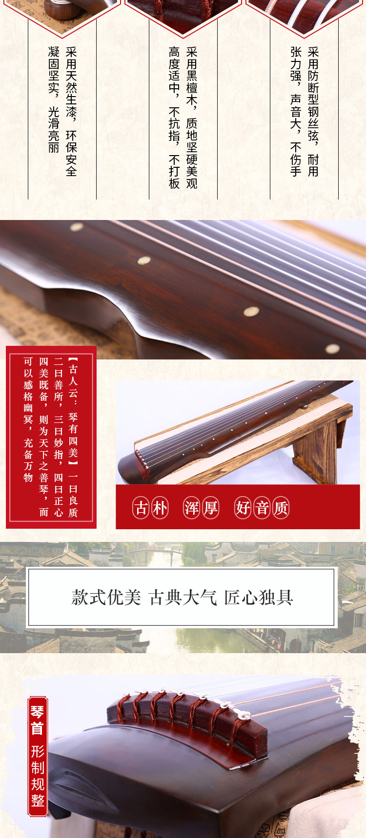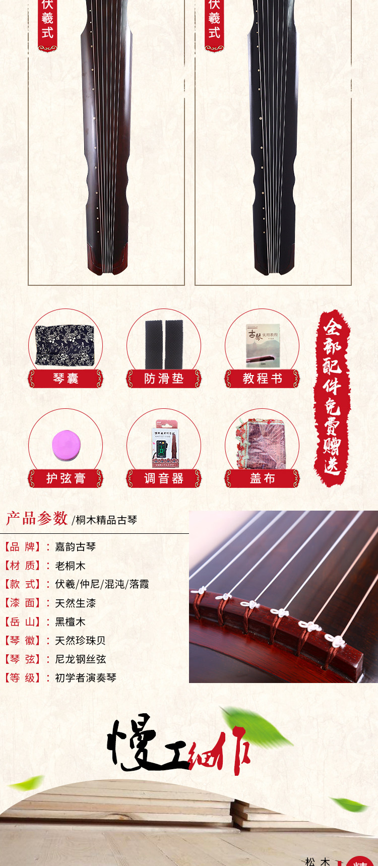 Lao Shanmu Guqin Beginner Pure Handmade Practice Seven Strings Exmaning Examination Qin Fuxi Zhongni Chaos