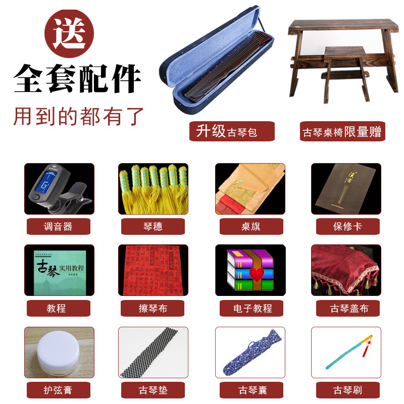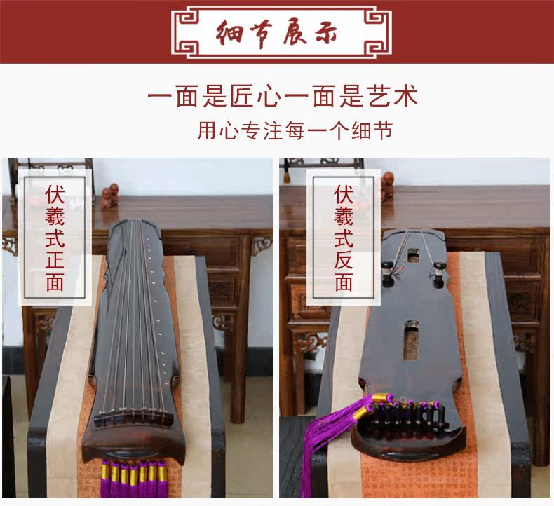 汉宫 Профессиональные выступления в входе в Guqin Beginner, пожертвованный столовый стул чистый ручной работы Old Shanmu Raw Lacquer Fuxi Style Guqin