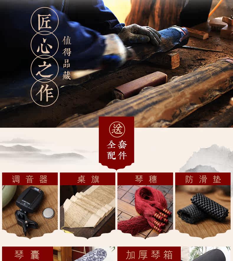 Guqin Lao Shanmu Ручная работа Ko Tan Игра в коллекцию Zhenpin Dark Brown Fuxi Ling Machine, образующая Guqin