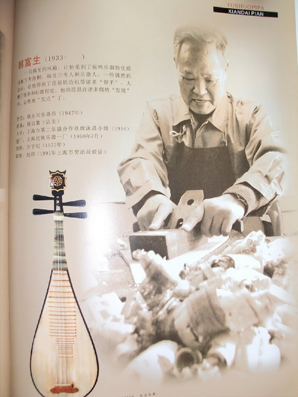 Пианино Мастера Хань Фушэн, пипа, сделанная на заводе Шанхайской заводы, хорошо известно.