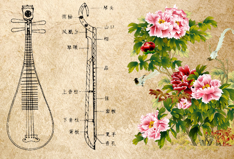 乐之洋 Старшая голова Цветок Pipa Выбранный деревянный рисунок имитация красного дерева Pipa Peony Голова цветок цветочный шахта красного дерева фаза Pipa