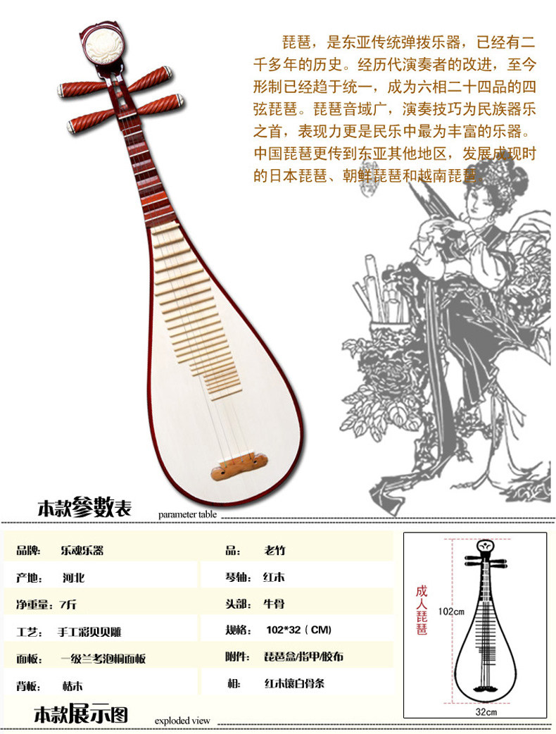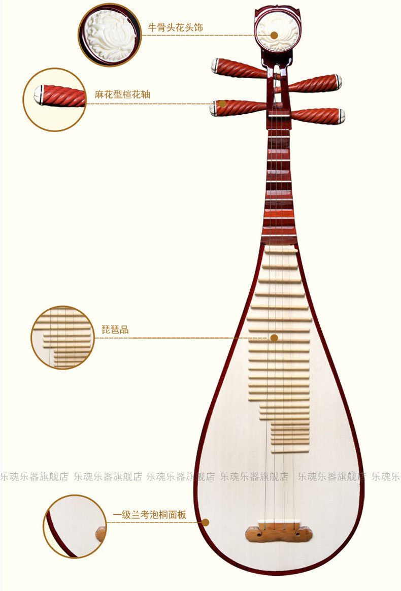乐魂 Бесплатная доставка Специальная раковина Mahogary Shell Craved Pipa Этнические музыкальные инструменты Производители прямая продажа взрослых PIPA Hard Wood Pipa