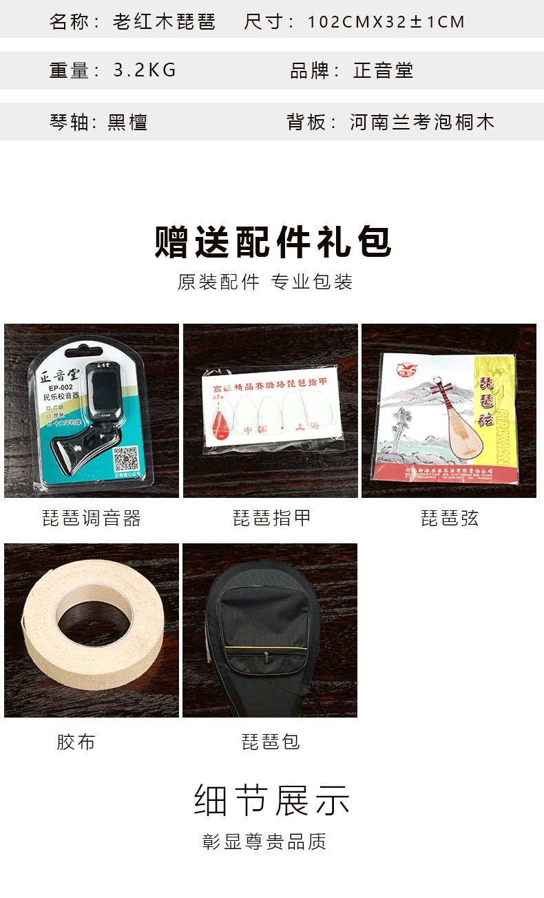 正音堂 PIPA Музыкальный инструмент Профессионал профессиональная производительность Mahogan Back Panel Платформа Pain Lan Kao Tongmu панель Pipa Pipa