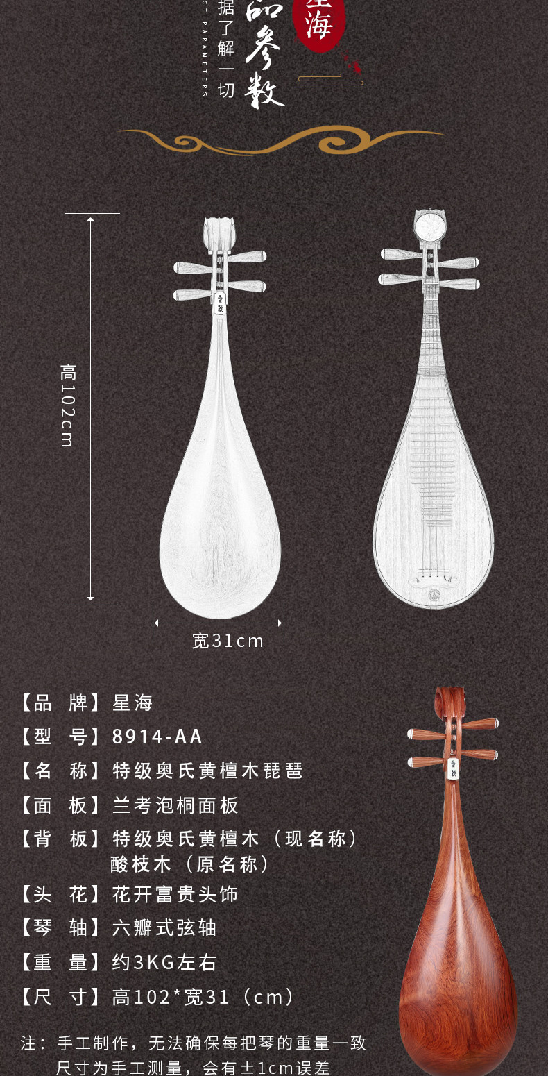 Синхай пипа музыкальный инструмент Олимпийский тест Деломальной древесины Raipan Pipa Pipa Moder 8914-AA