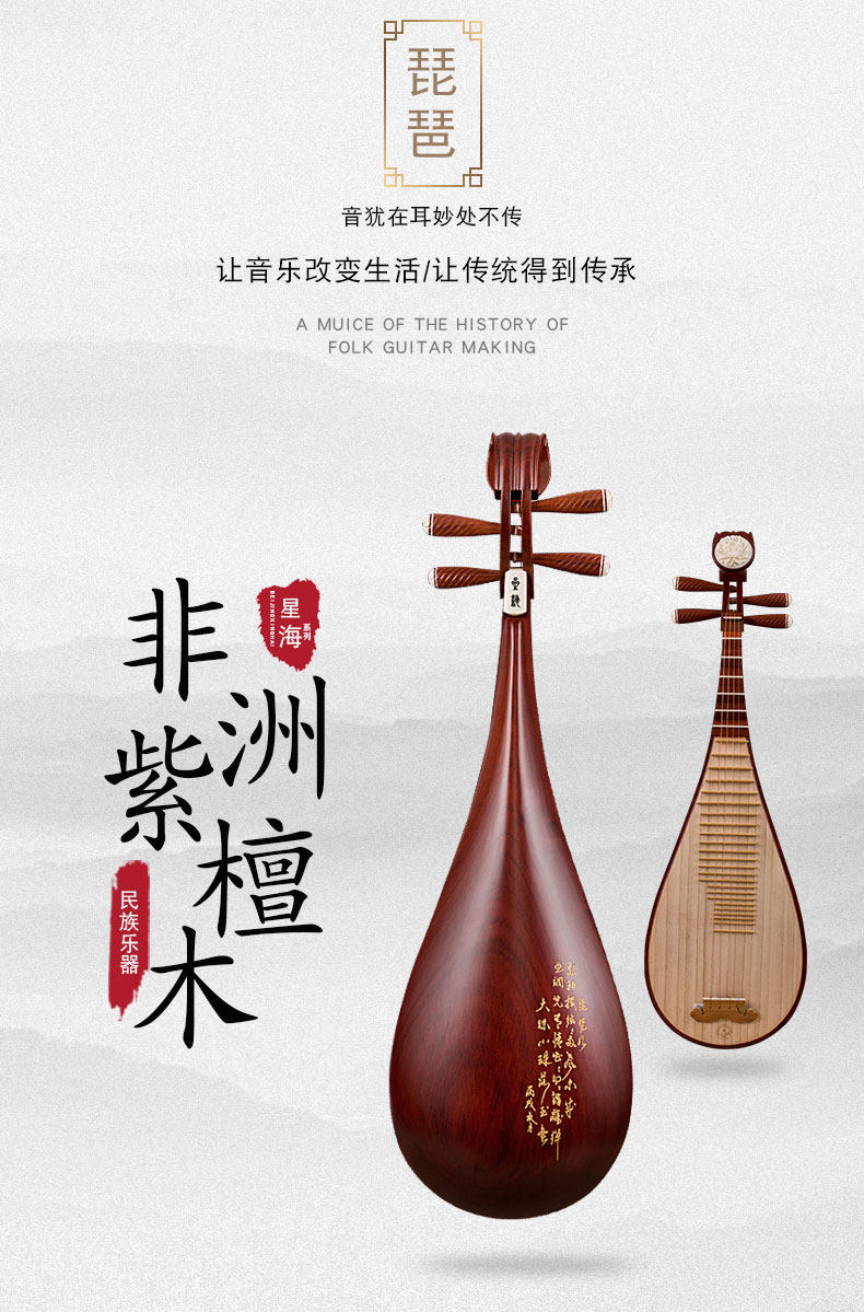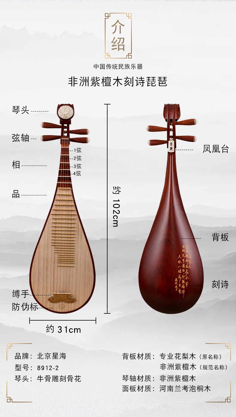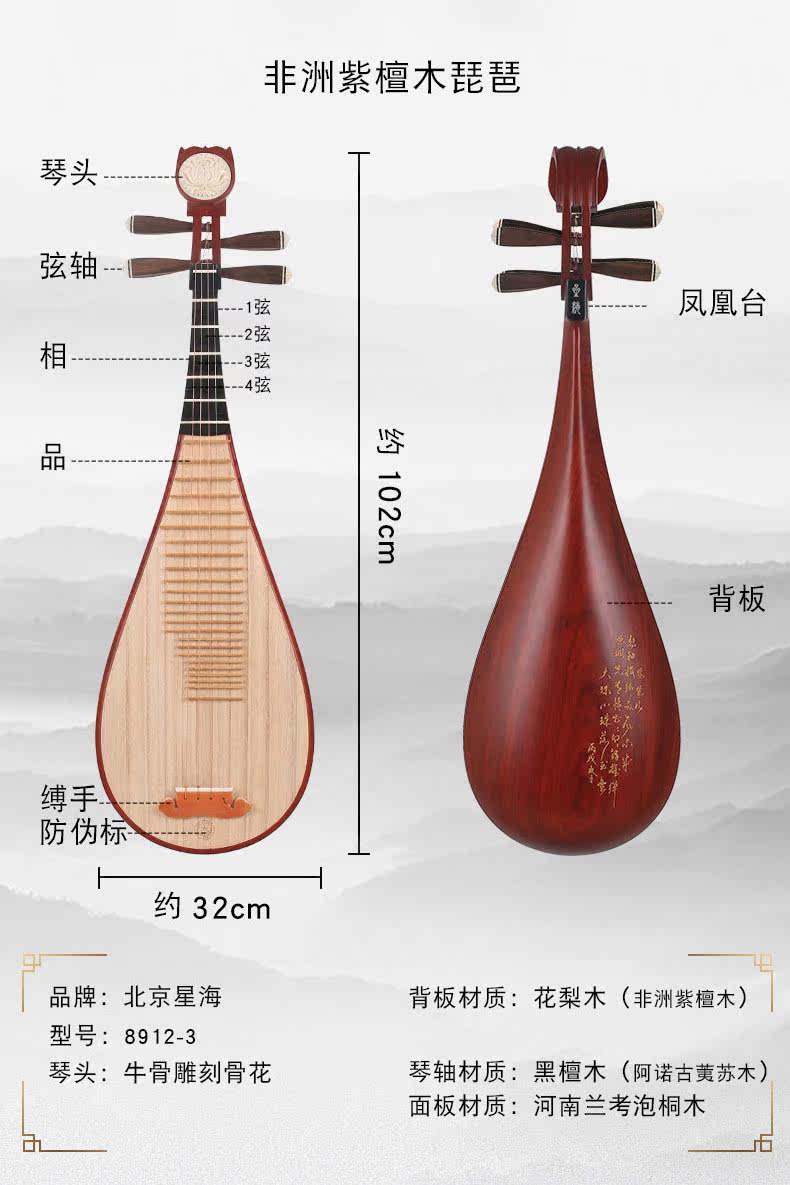 星海 PIPA 8912-2 Африканский розовыйвуд Розовойвуд Полированные поэзии вырезанные Redwood для взрослых начальная школа PIPA