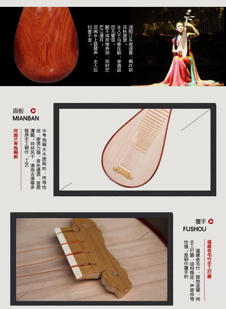 梵巢 Big Red Red Rosewood Wood Performance Test -Уровень для взрослых PIPA Музыкальный инструмент знаменитый подарочный аксессуары для фортепиано ручной работы