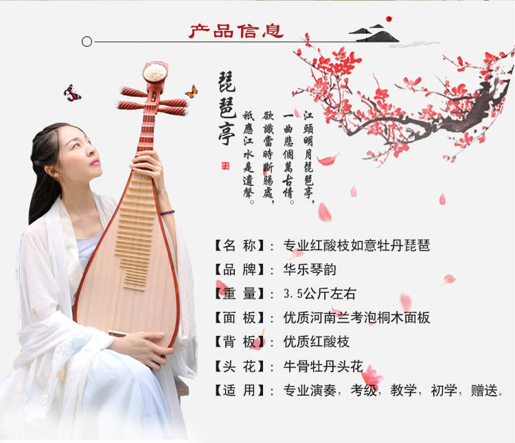 Hua Leqin Rhyme Red Stanura Pipa Musical Instrument Professional Performance Class Pipa Pinosic Acid Rosewood Pipa Beply Pipa