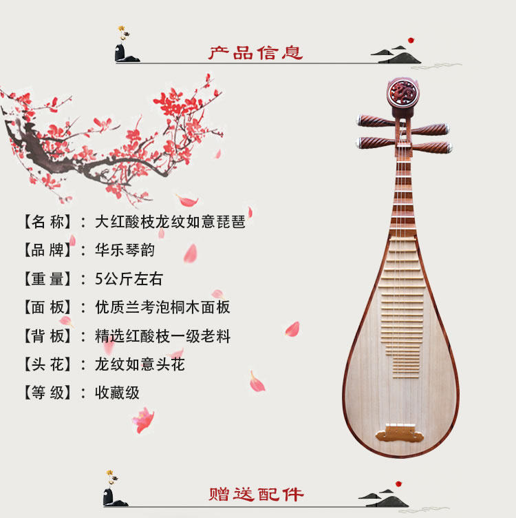 Hua Leqin Rhyme Dahongya Pipa Professional Performance Class Old Mahogany Pipa High -End Национальные музыкальные инструменты аксессуары доставки