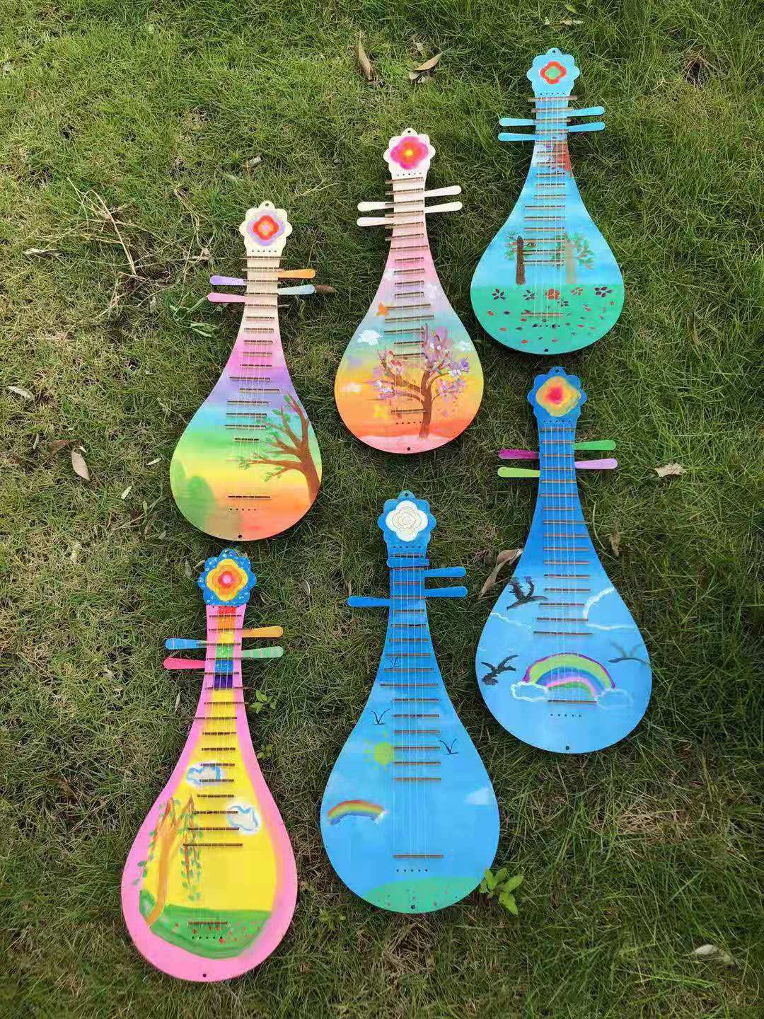 Деревянный набор материалов для детского сада, раскраска, китайская гитара, DIY, граффити