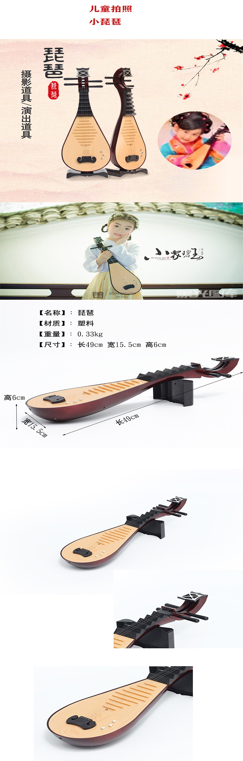 2023 ФОТОГРАФИЯ КОСТИМА Детская сцена выступление Gongchen Wind Cage Пластиковый пластиковый музыкальный инструмент PIPA Dance