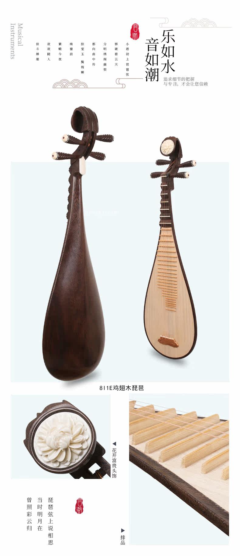 音潮 (Yinchao) 8i1e куриные крылышки Вуд -полировки Колледж использует фортепиано -не -рутинные национальные поп -инструменты