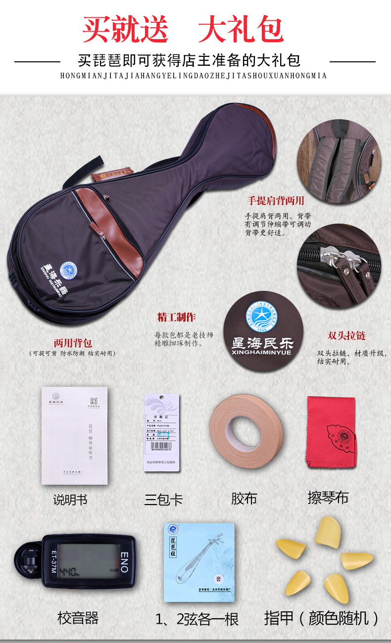 PIPA Национальный музыкальный инструмент Синхай 8913 PIPA Музыкальный инструмент Mahogan Plock Pipa исполняет PIPA
