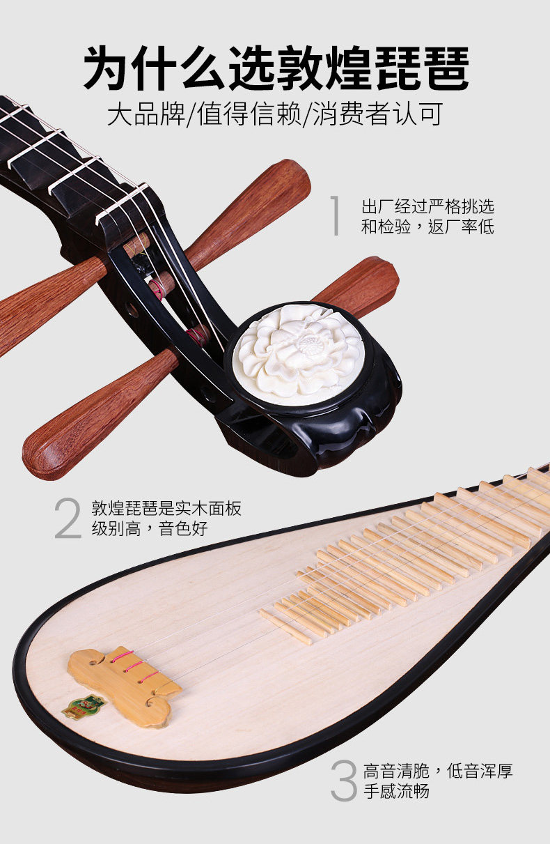 敦煌 Бренд 572 м пипа Пион Голова деревянная деревянная деревянная сетка для взрослых детей младший, младший, первое обучение, преподавание тест граждан