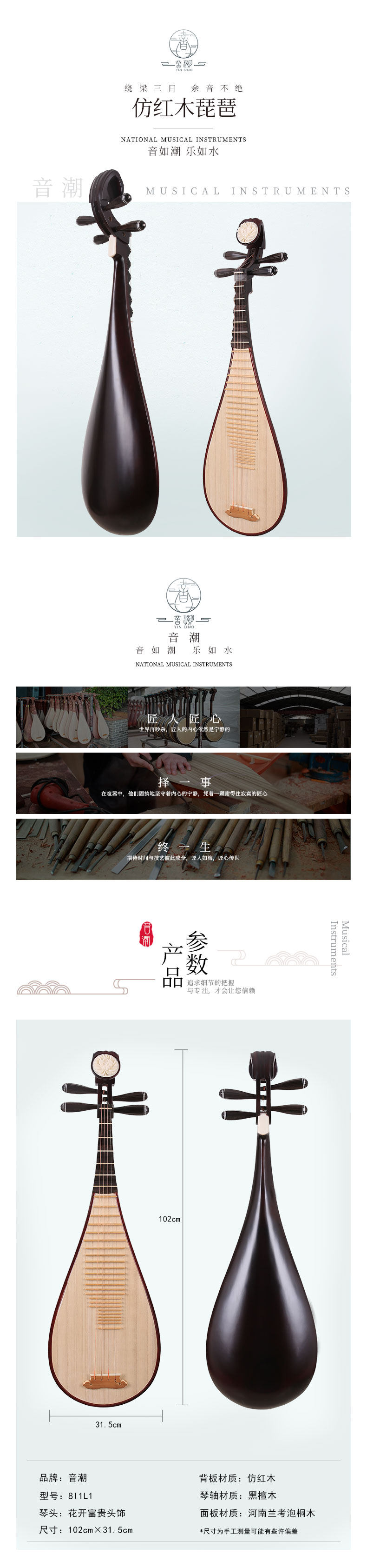 音潮 (Yinchao) 8i0l1 Имитация Mahogany Pipa Взрослые дети Практикуйте первое изучение фортепианной национальной поп -музыки