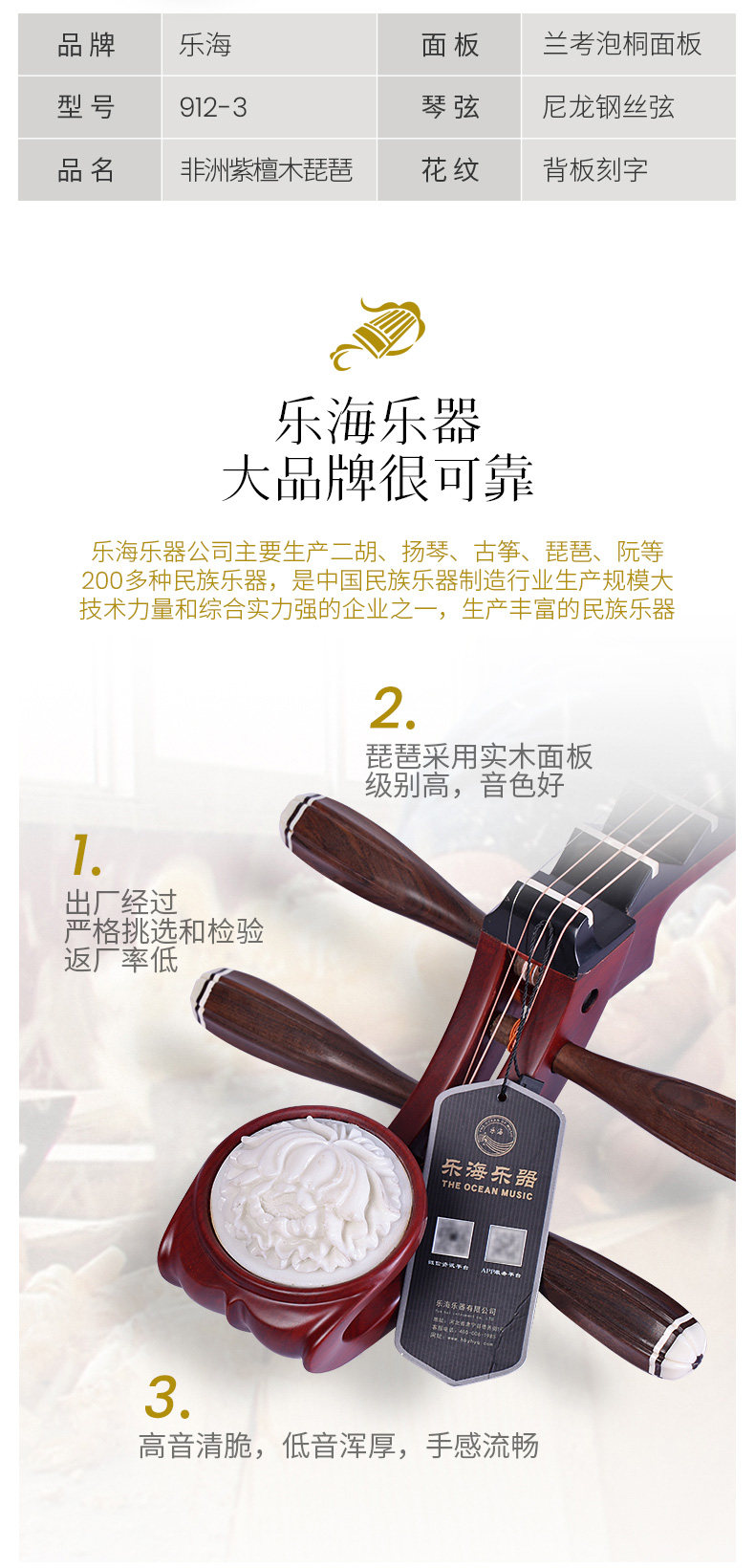 Lehai Pipa 912-3 Человеческая груша Мудана голова не-сандалвудской музыкальной репутации PIPA Junior Test Performance