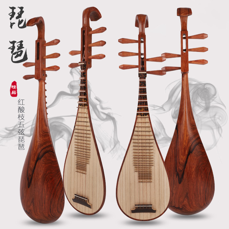 Красный розовыйвуд играет в Pipa Five -String Professional Baga Pipa Black Acid Acid Leach Sandan Handmade Pipa
