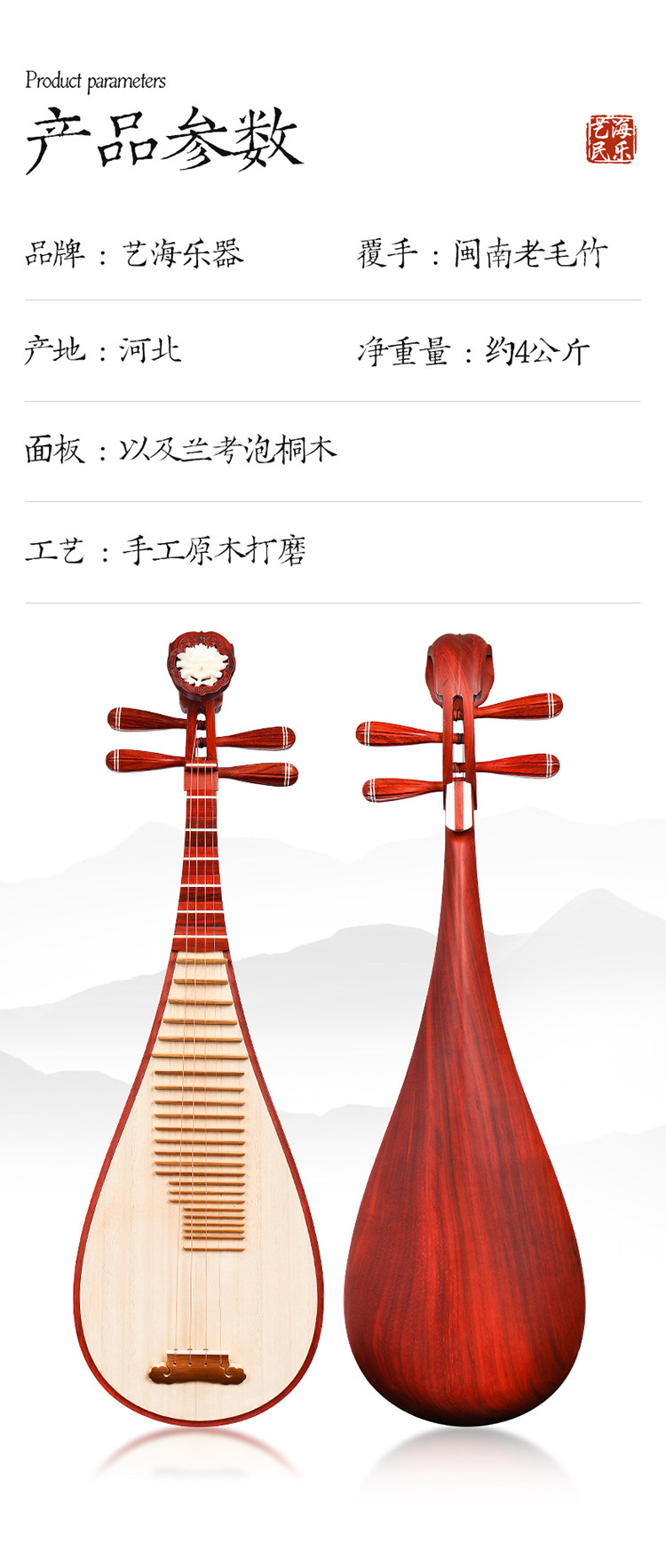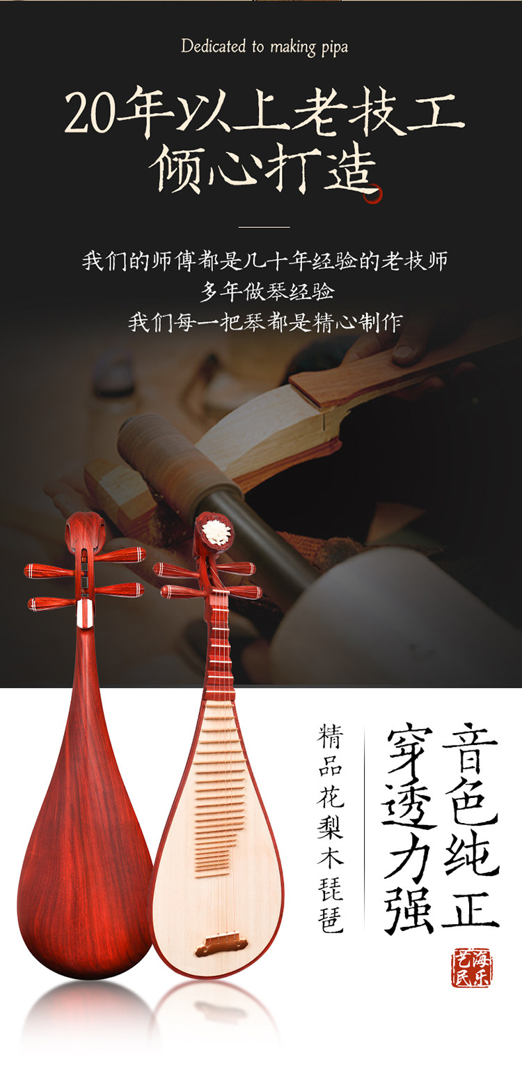 Hualu Wooden Pipa Musical Instrument Children Test Special Special Beginner Junior First School Professional Pipa Pose Pipae