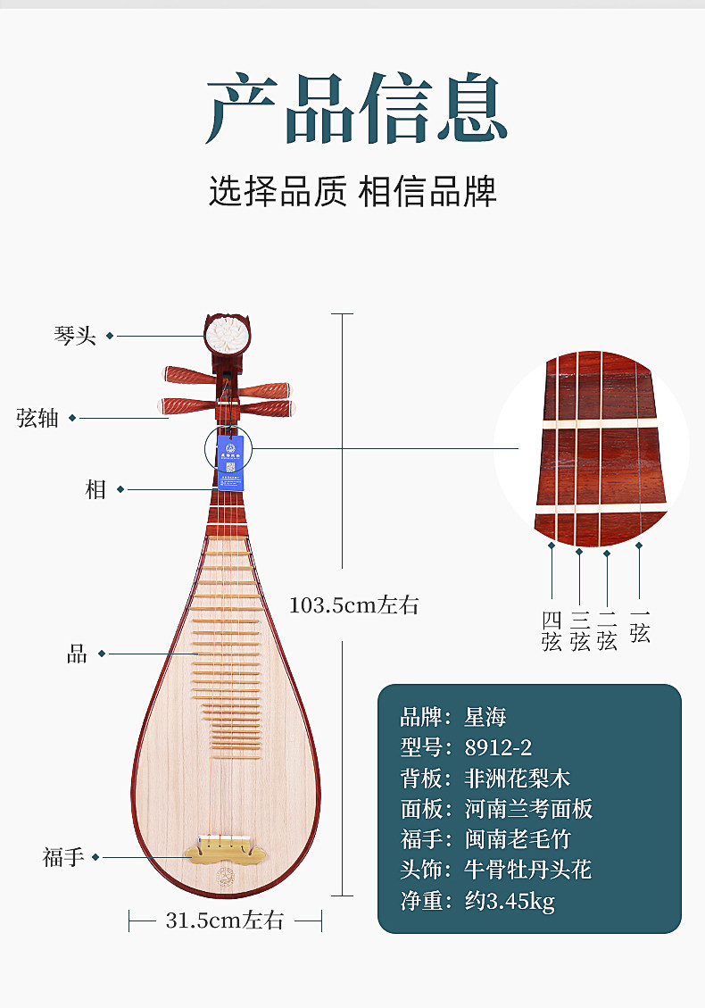 Синхай 8912-2 Hualu Wood Pipa Музыкальный инструмент играет Pipa Professional Mahogany Entry Junior Practice Pipa