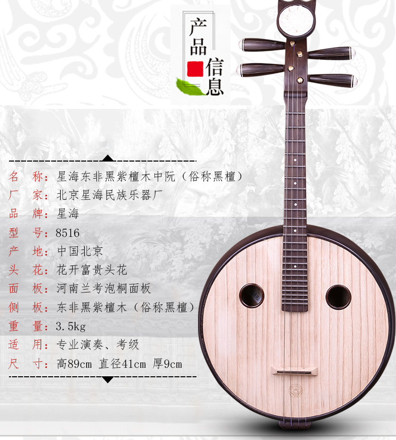 Пекин Синхай Средний Руан Музыкальный инструмент Профессиональный королевский сандаловый дерево 8516 Zhong Ruan Steel Pin