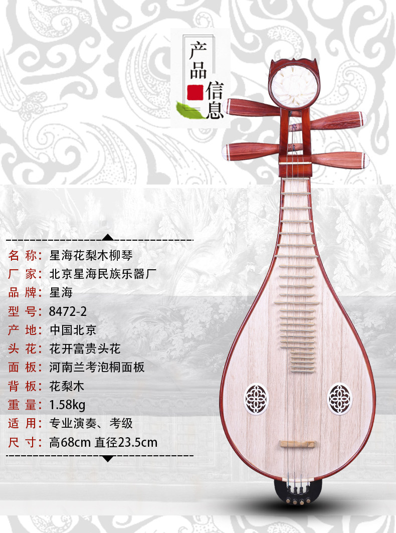 Профессиональный розовыйвуд 8412-2 Shimizu Liuqin Singhai Музыкальный инструмент Hualu Liuqin Test использует Цинь Люцин Синхай Люцин