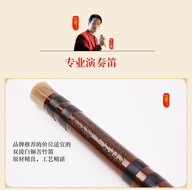 鸣声 Ding xiaming специально производится с высоким уровнем горькой бамбуковой флейты F Настройка взрослых высоких показателей Hengko Flute C -настройка