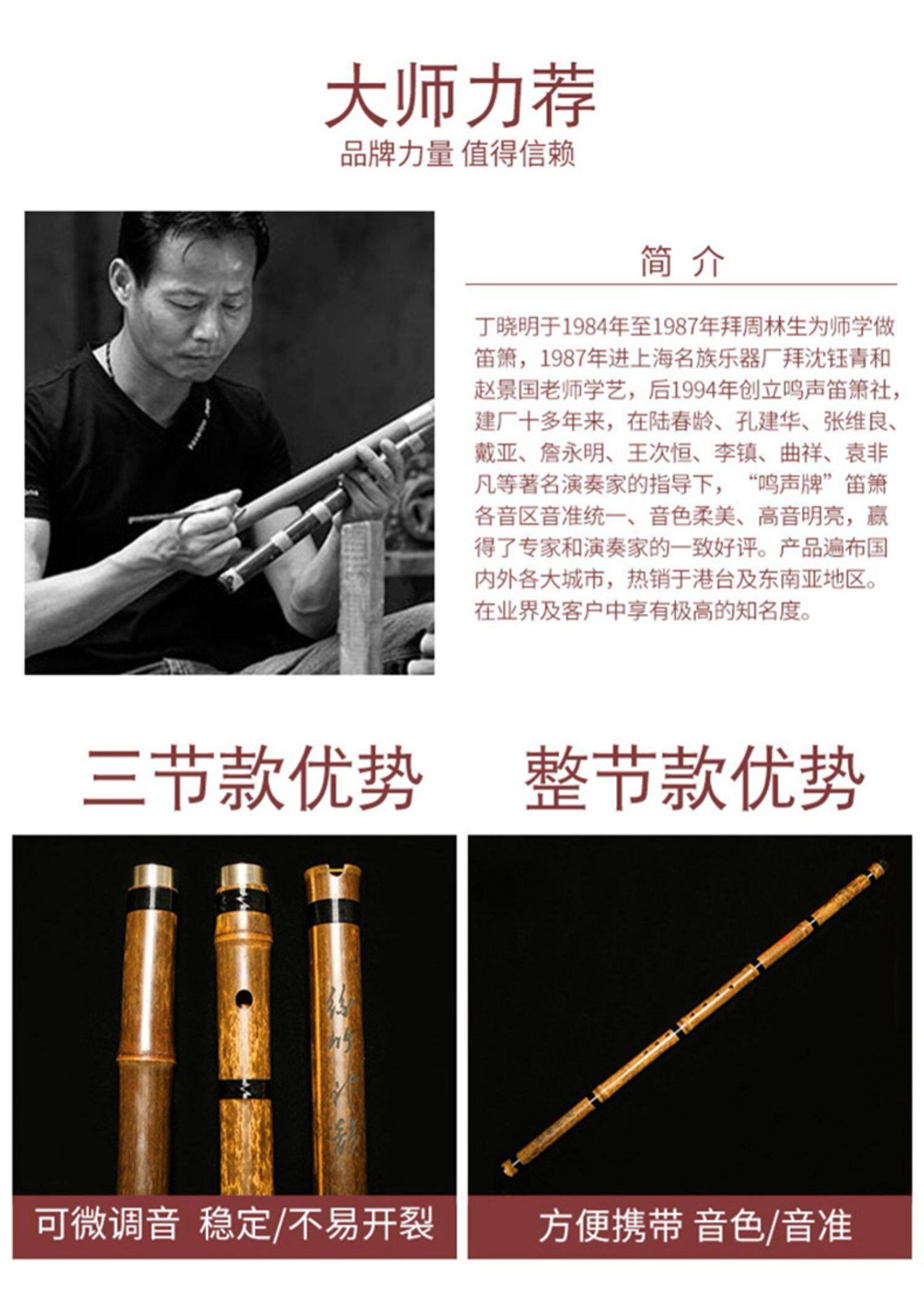 鸣声 Профессиональная выступления пещеры флейта высокий уровень взрослых нулевых вход в фиолетовый бамбук Сяо Музыкальный инструмент f, шесть восемь лунок, три секции флейты