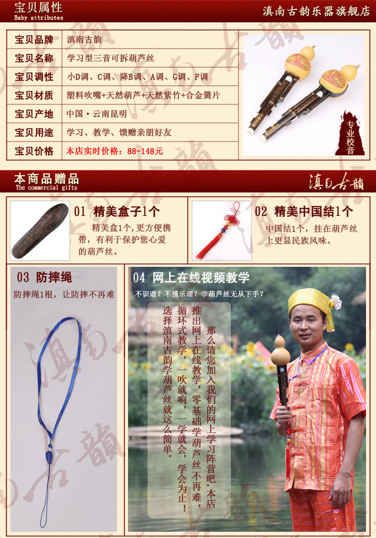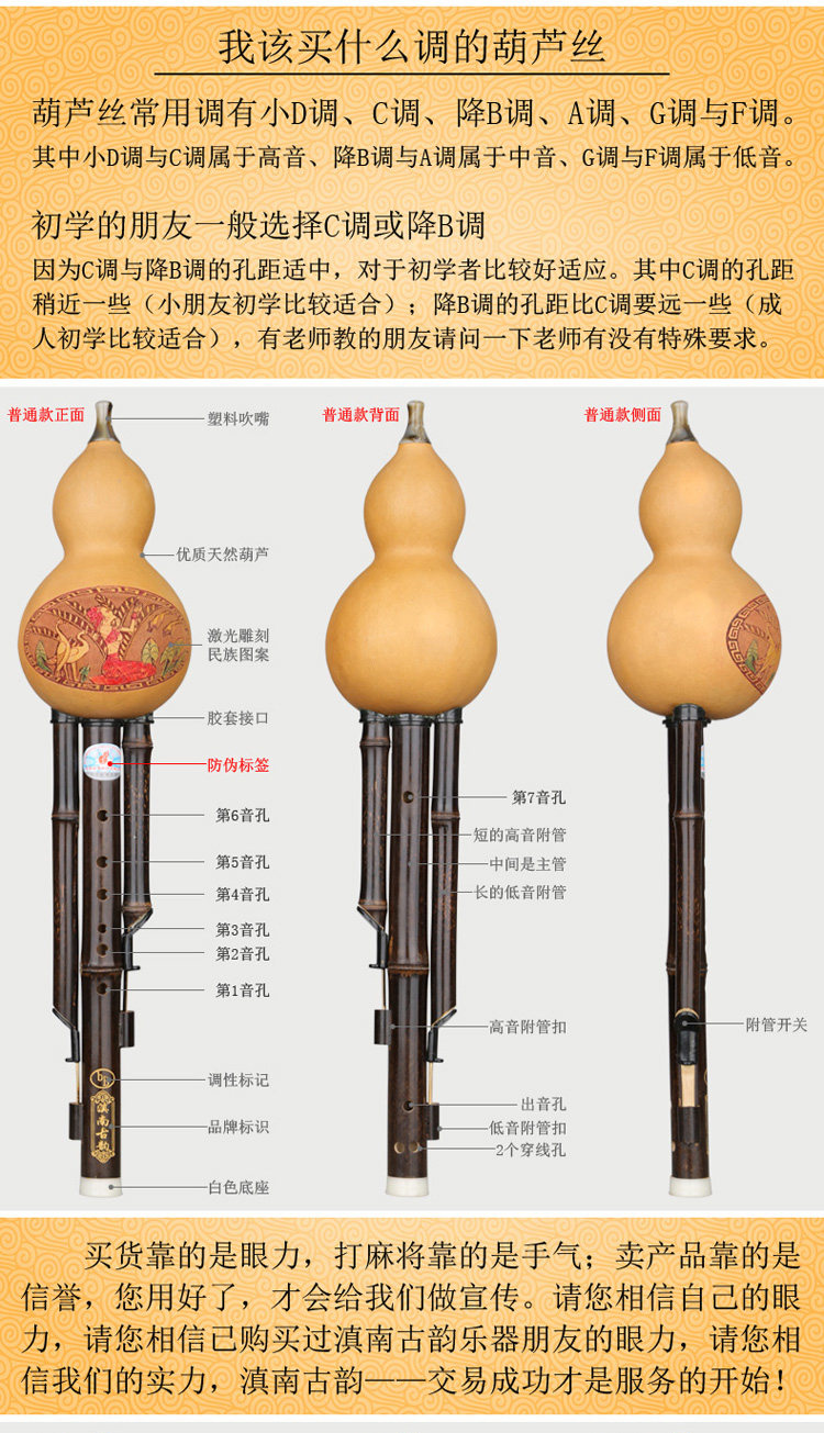 Тыква шелковой музыкальный инструмент Junction C корректирует A/G/F Tun Начальные школы для учащихся взрослых инструментов на юге Древнего Шарма Юннана