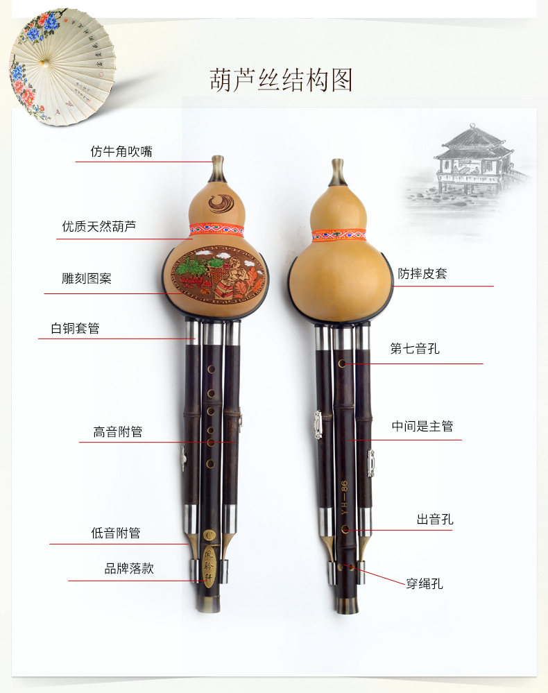 凤聆轩 Профессиональный zizhu set тыква C, настройка b tun g tun f, little d смешивание тыквы шелк пять делает инструменты