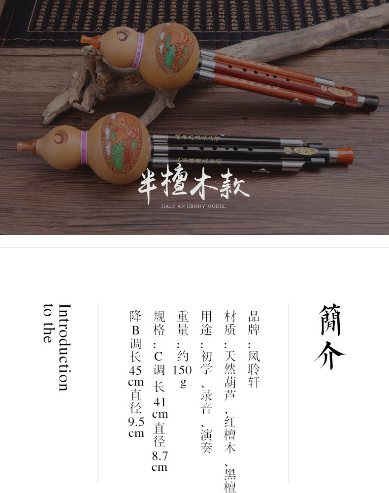 凤聆轩 Профессиональные этнические музыкальные инструменты из черного дерева Эбен из сандалового дерева для начинающих для взрослых