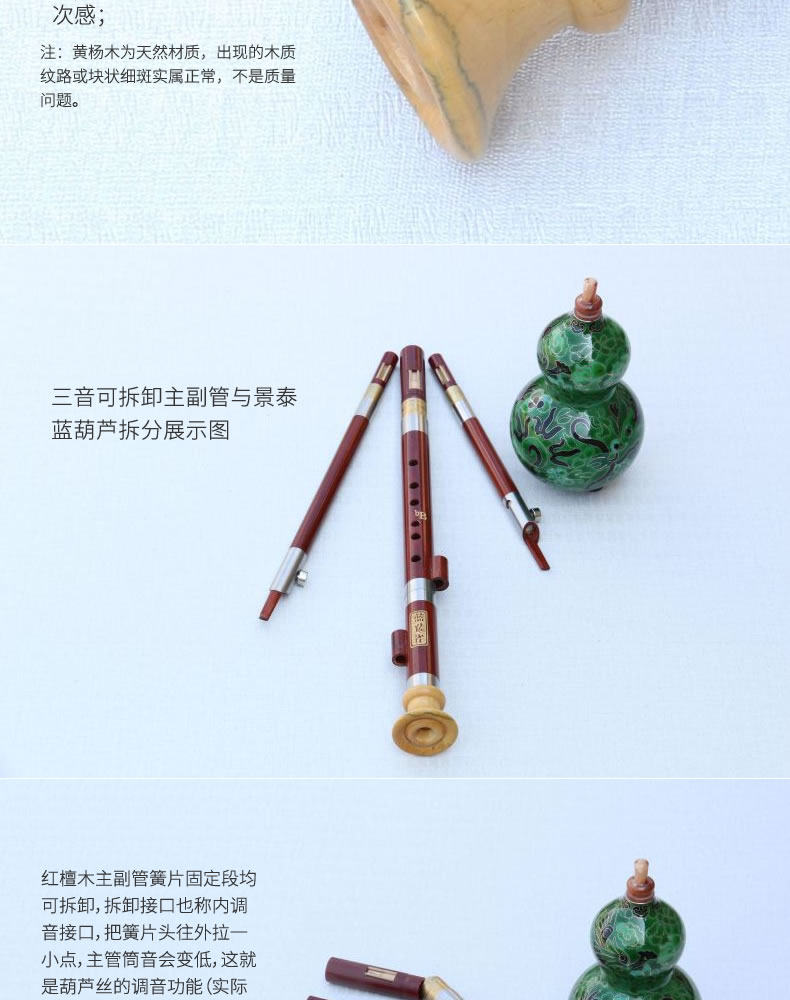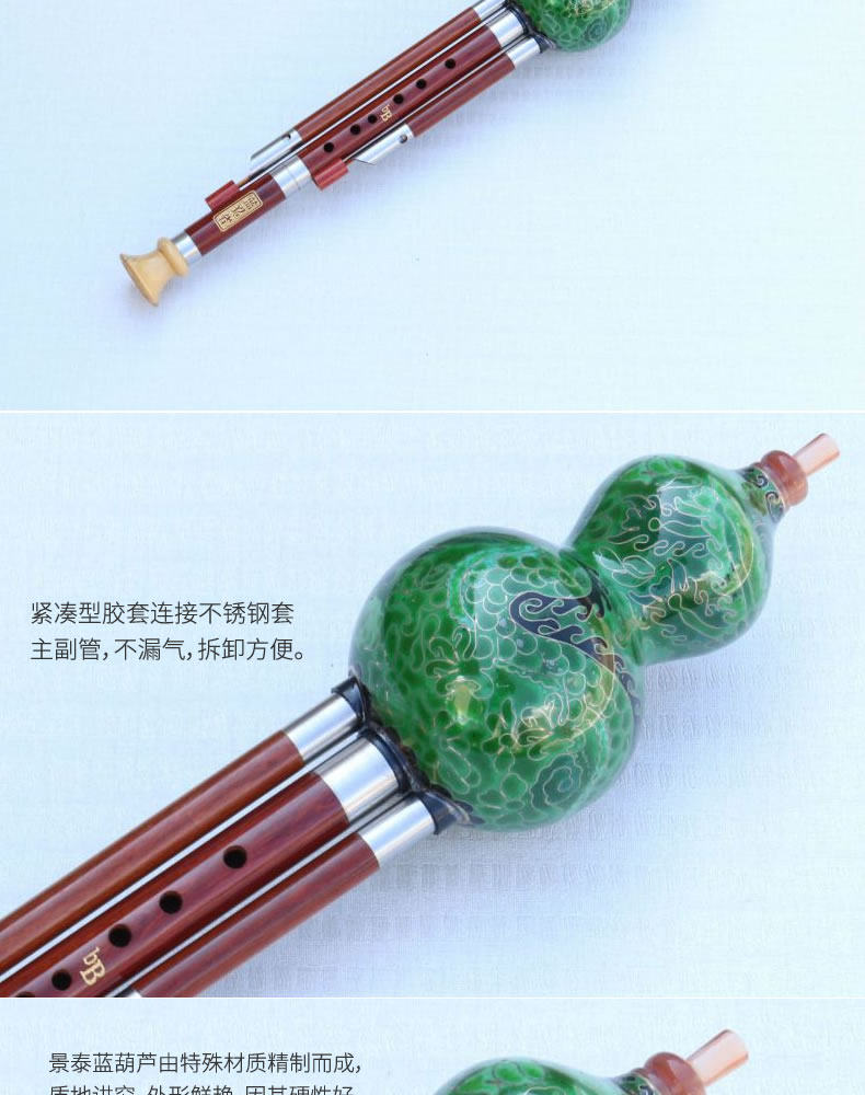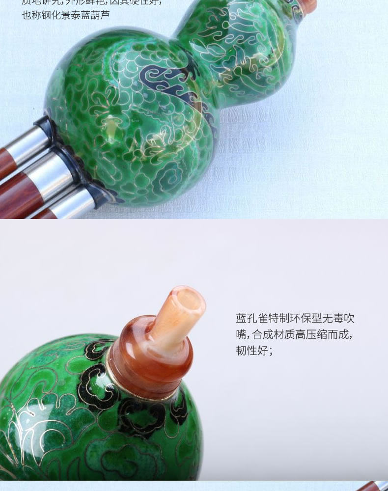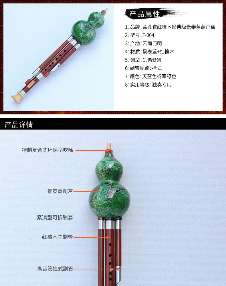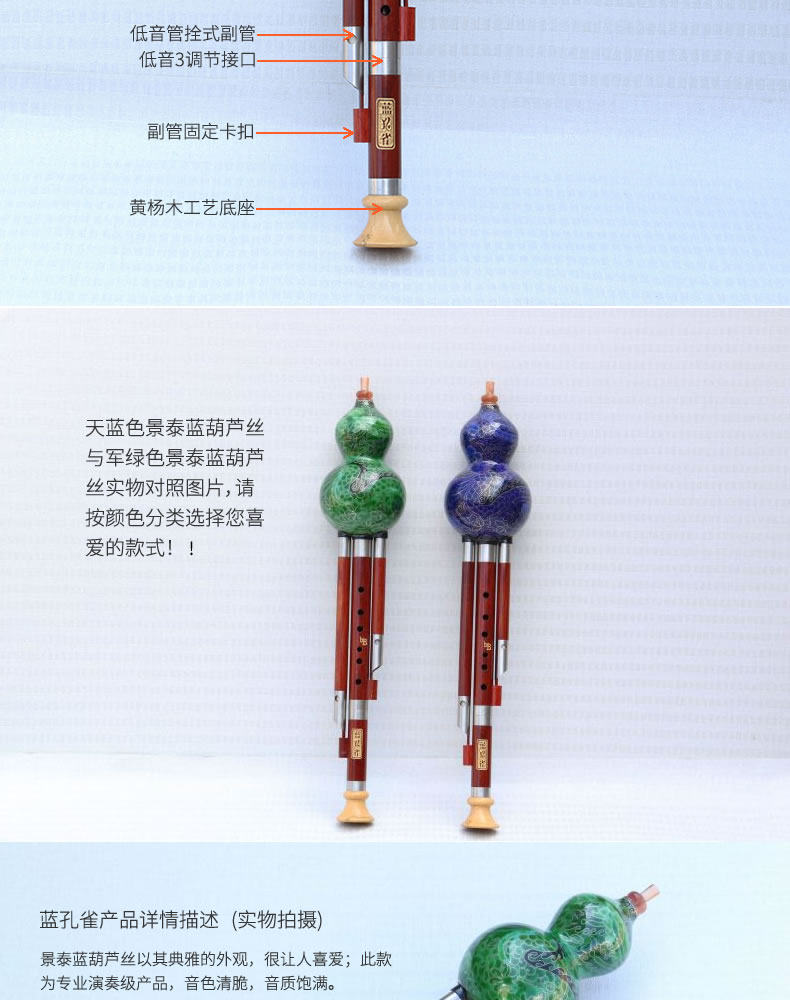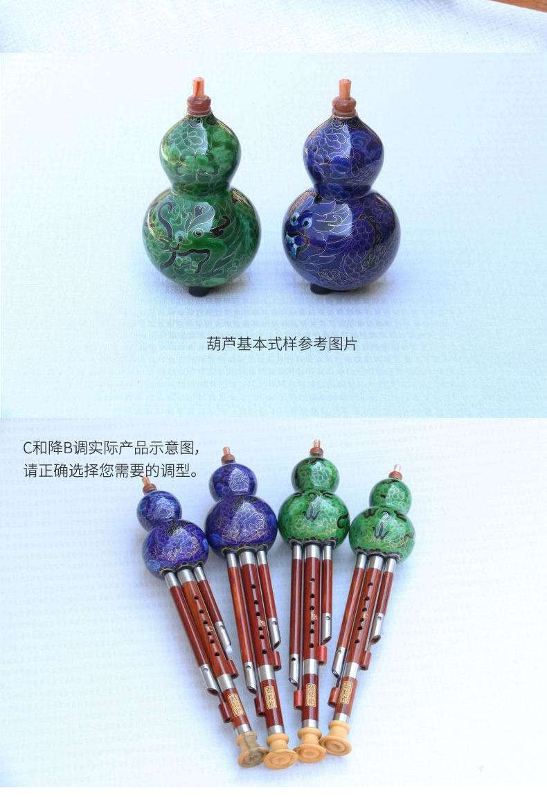 Cloisonne, красная сандаловая трубка, тыква шелк, синие приборы павлина, C, ключ B, B Flat Key, 7 отверстий, тип производительности