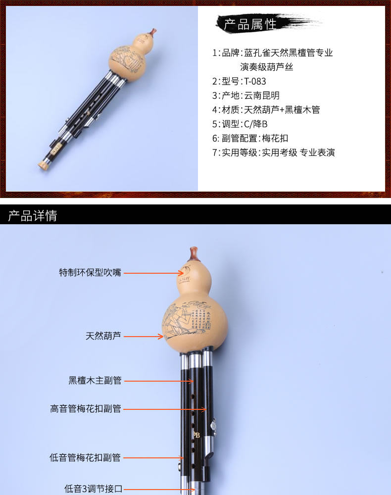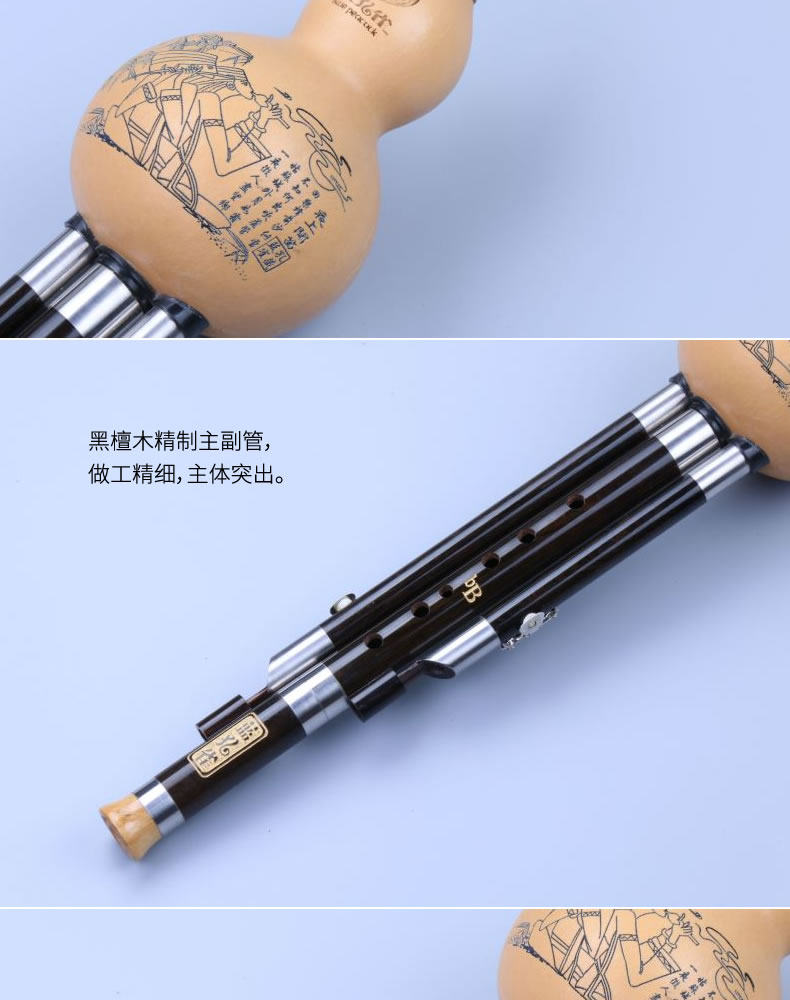 Blue Peacock Brand Professional Performance C-Down B-Down Ebony Wood Tube Hulusi 7-луночные музыкальные инструменты Yunnan Specialty