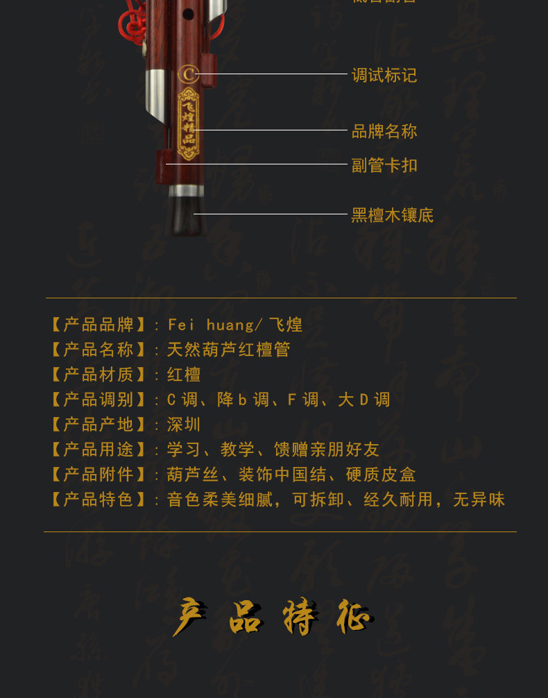 Feihuang Mahogany Pipe тыква c, чтобы уменьшить настройку детей младших учащихся для взрослых и средних школ с профессиональными музыкальными инструментами.