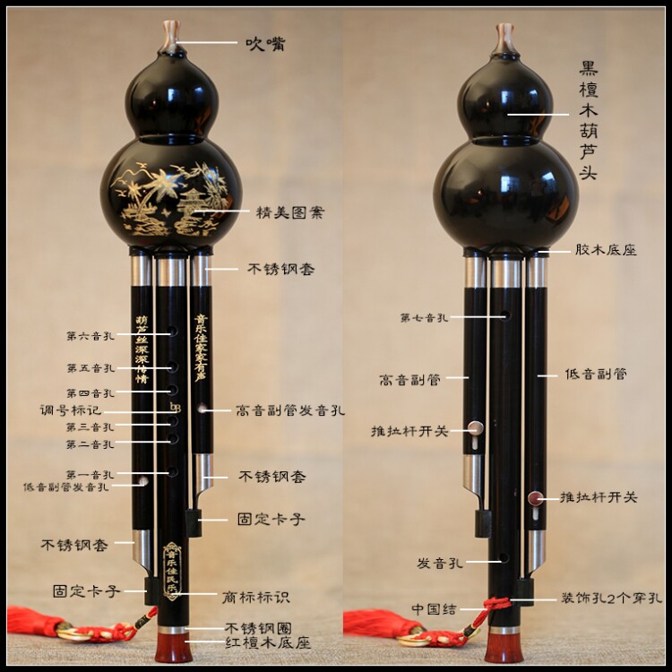 [Особенности продукта]: Музыка Сандаловая древесина джиакуана красного сандалового дерева.Требл яркий и полный, бас полон и ясен;Интерес, высокая эластичность, высокая долговечность немецкая импортная тростника, хорошее качество звука, звукЧистый цвет, сильный национальный вкус, хороший вкус и хорошая чувствительность, гармоничный звуковой шарм;Медные наборы изысканно красивы для нержавеющей стали.