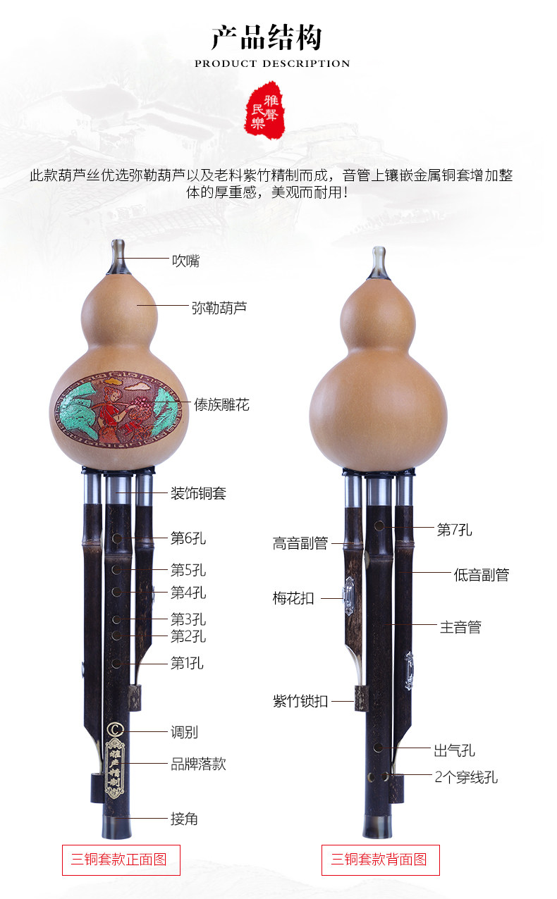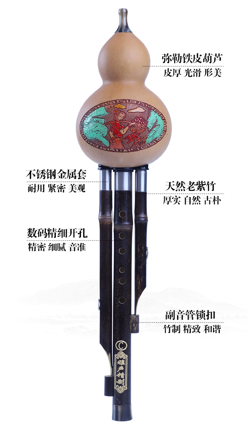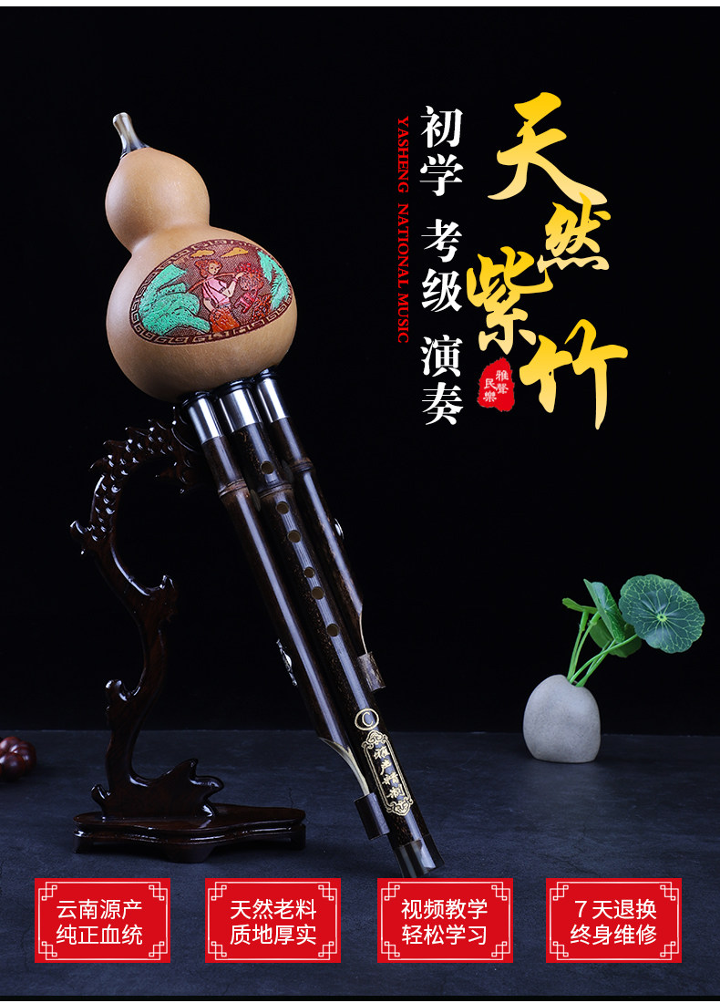 Yunnan Professional Performance Natural тыква Три звучит три звука фиолетового бамбука, падение роли взрослой начальной и средней школы c