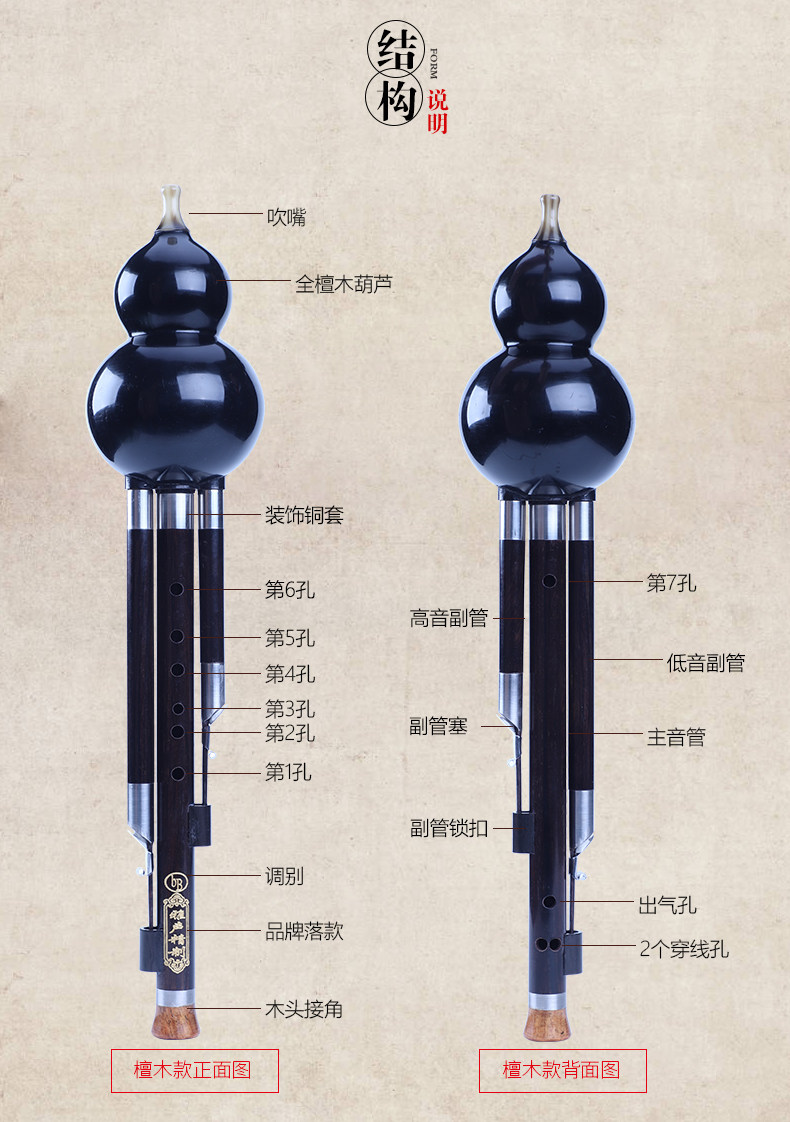 Профессиональные музыкальные инструменты из черного дерева Эбен из сандалового дерева для школьников для взрослых из провинции Юньнань, начальная и средняя школа, подходит для начинающих