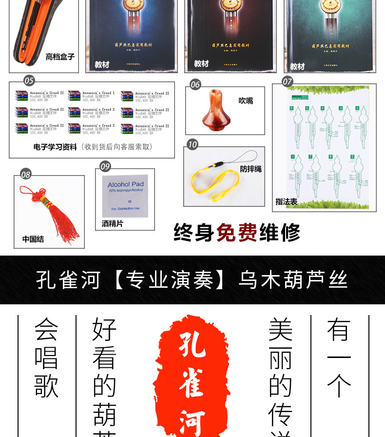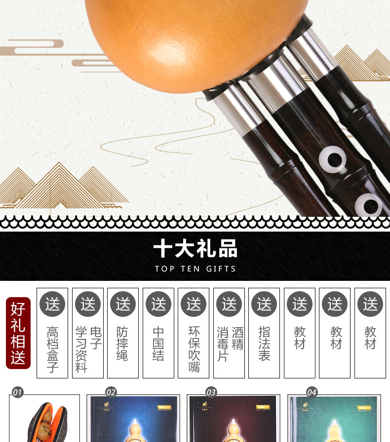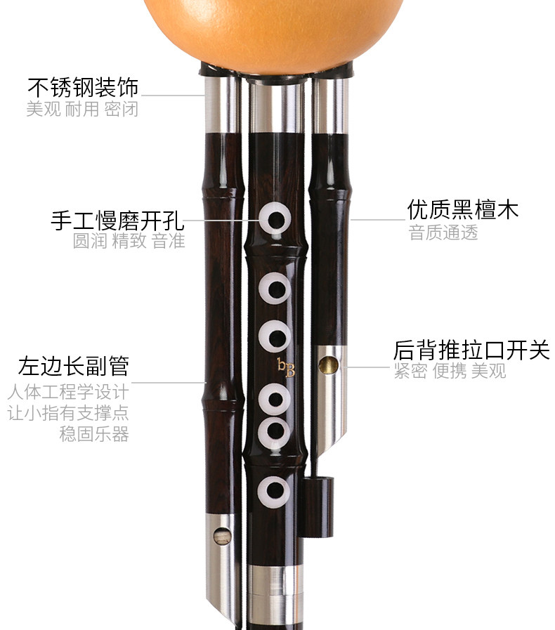 Высококачественный стиль производительности Peacock River Hulusi Hulusi Ebony Hole Inplaid C Tune/B Flat/Small D/Gf Tune Stage