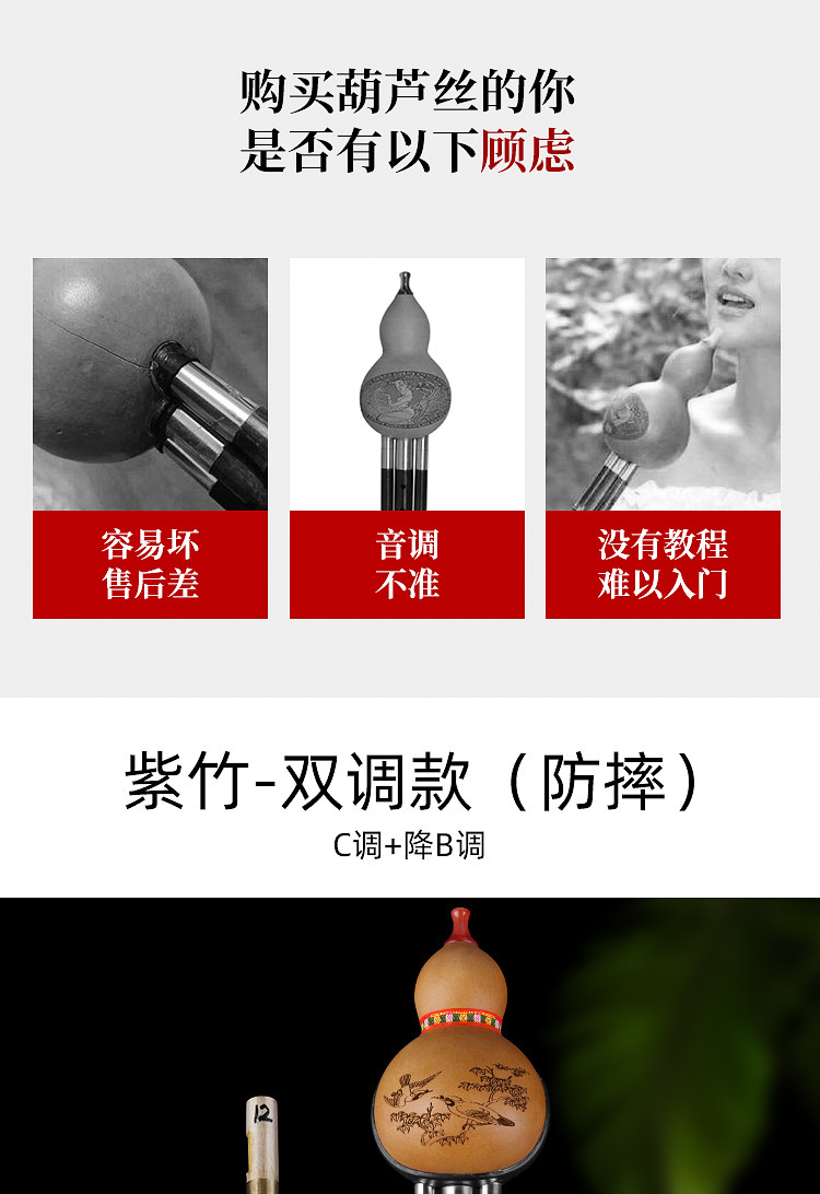 Двойная тыква, наконец, приборная прибор Zizhu Tube C, чтобы уменьшить B -настройку младшего младшего профессионального профессионального типа Yunnan Mahogany Ethnic Pipe Music