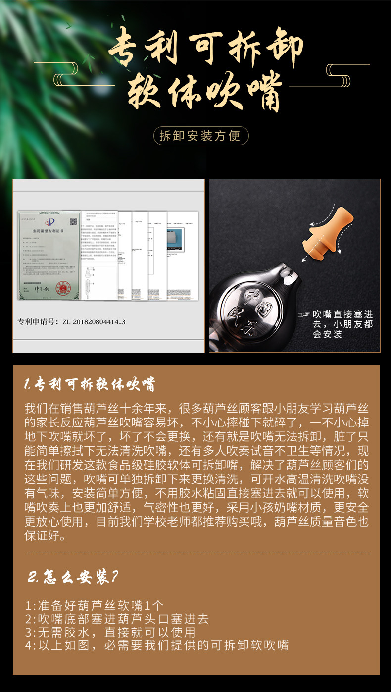 Прочная прочная медная крыла, качающаяся деревянная трубка Cucurbit, снижение B -настройки.