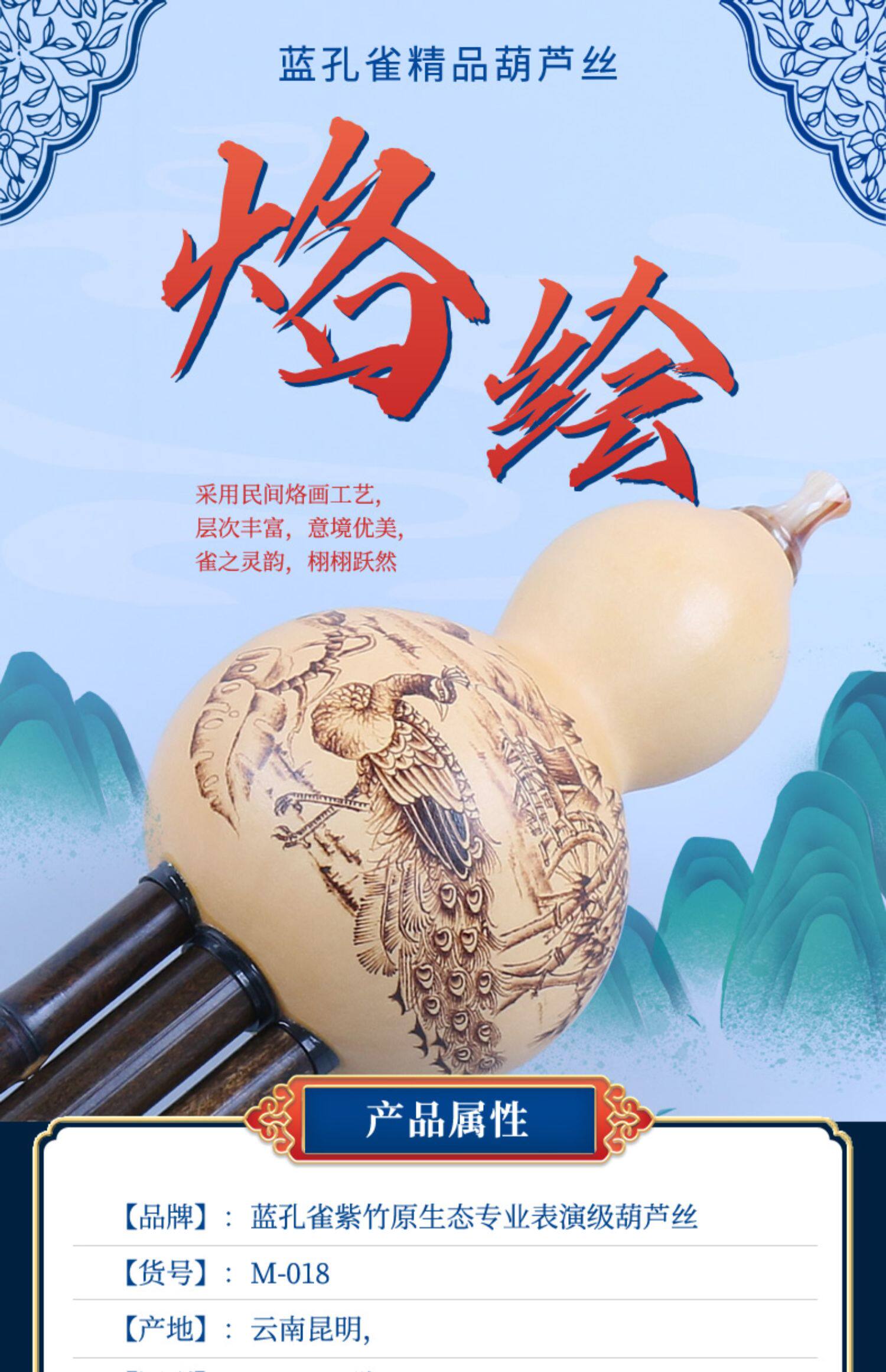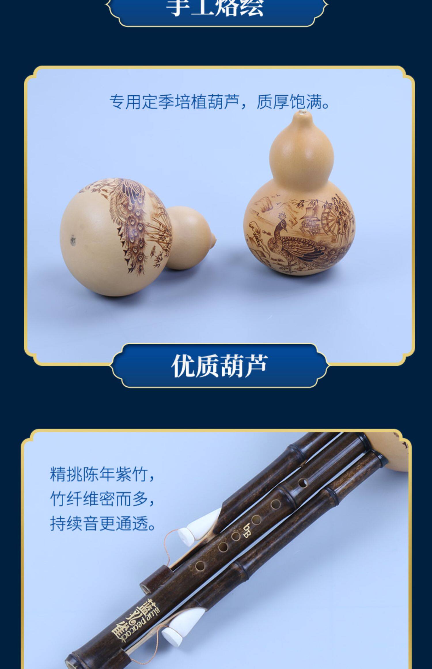 Blue Peacock, Pirographed Hulusi, фиолетовый бамбук-экологический профессиональный уровень производительности Hulusi, 7 лунок