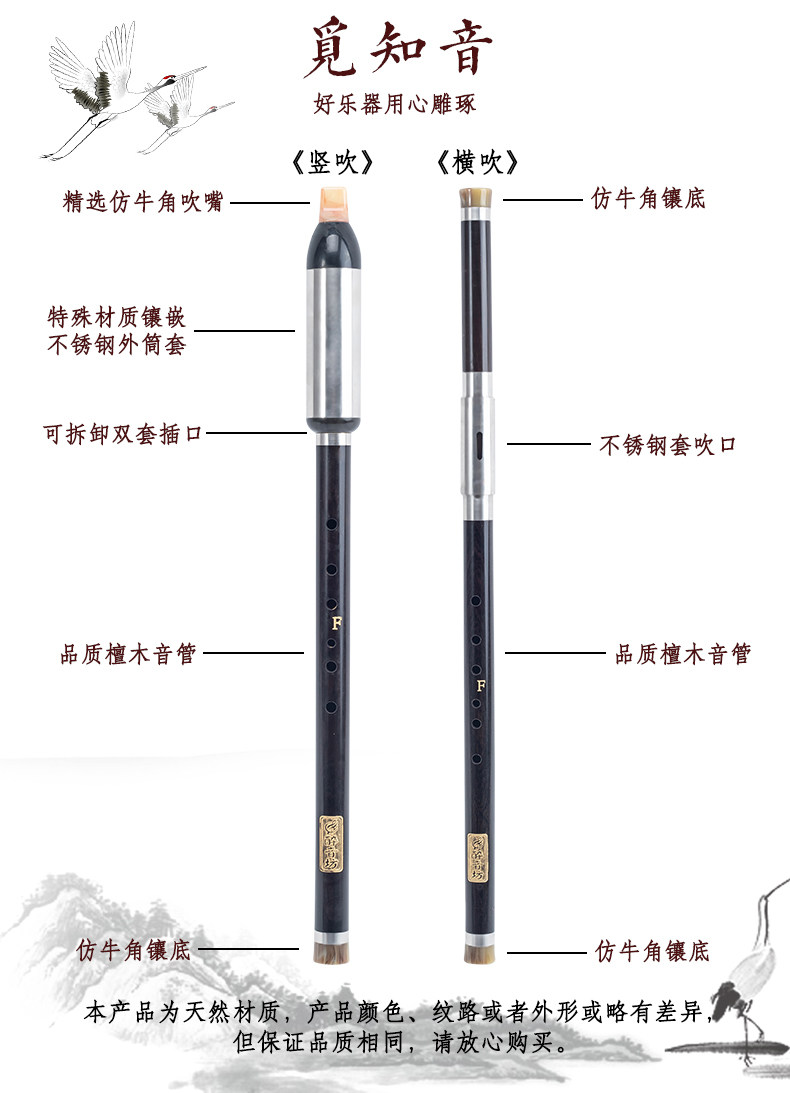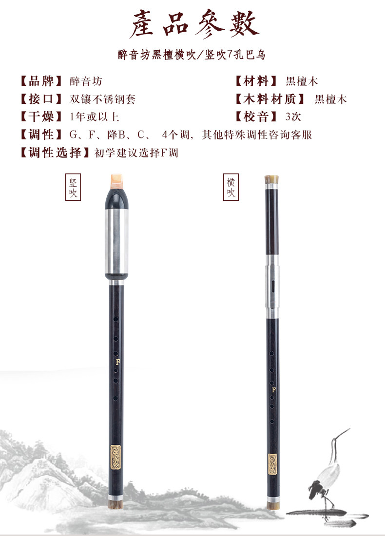 醉音坊 Музыкальные инструменты из черного дерева Эбен из сандалового дерева для взрослых для школьников, подходит для начинающих