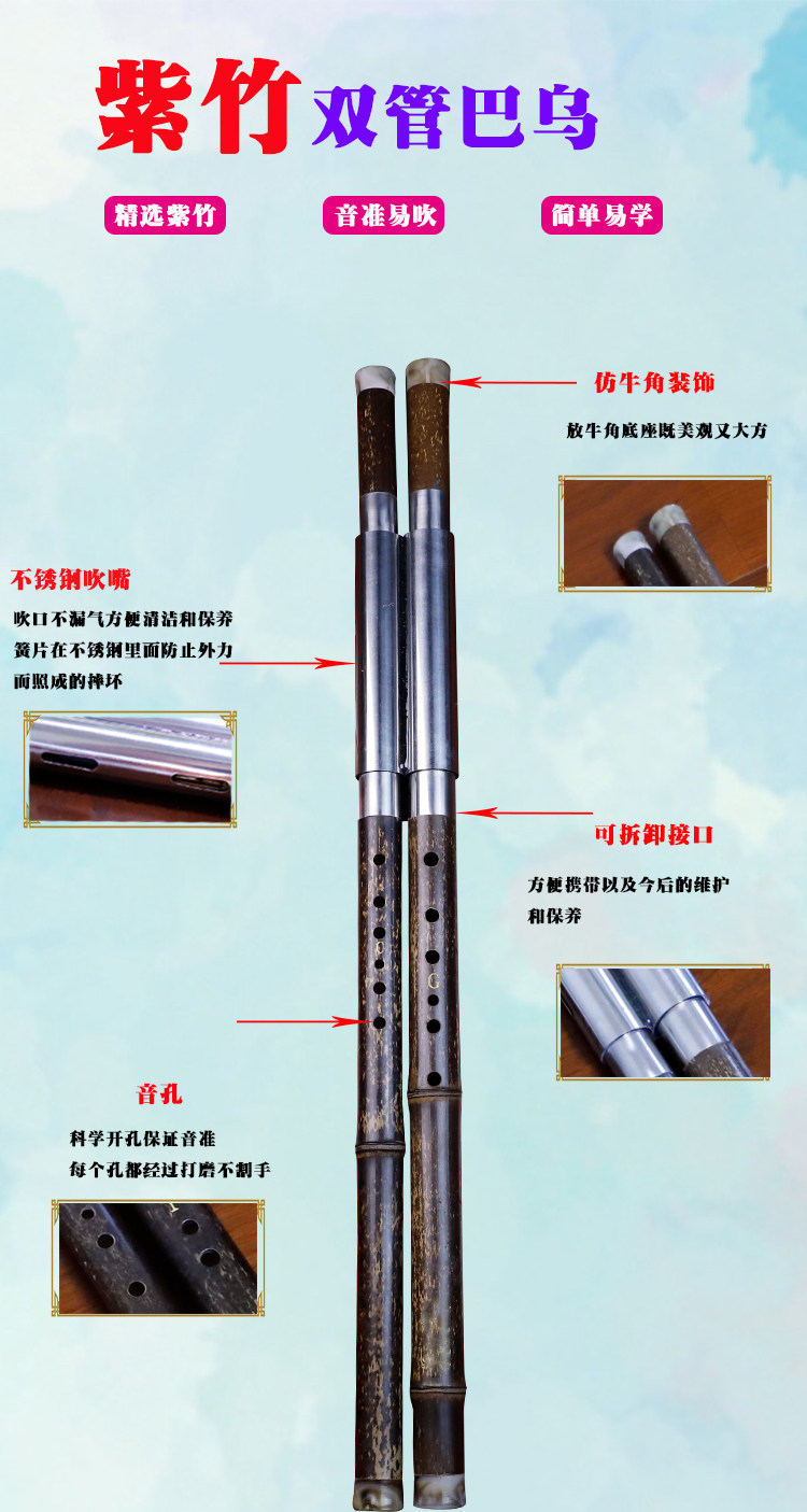 Zizhu Dual -Tube PAPU Инструментальный горизонтально удары F, чтобы уменьшить B, G Plus C, выступление для начинающих для взрослых.