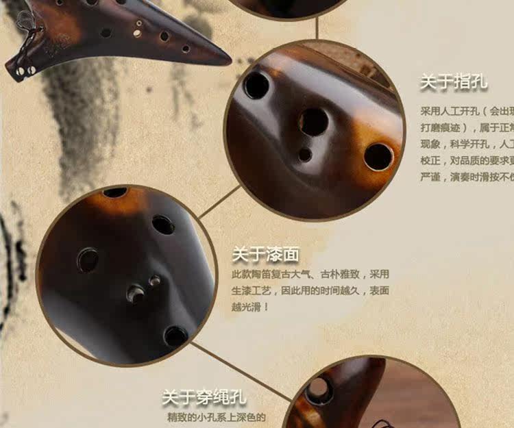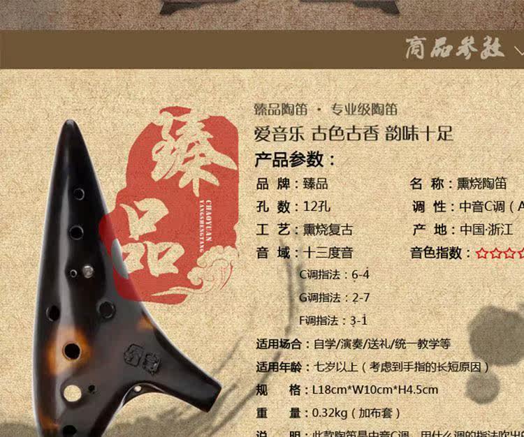 Бренд Ocario Raw Lacquer копченой двенадцать отверстий в среднем уровне, мелодии высоты тона, Pompedo Performance Level 12 -Hole Top Top Top Подличный музыкальный инструмент