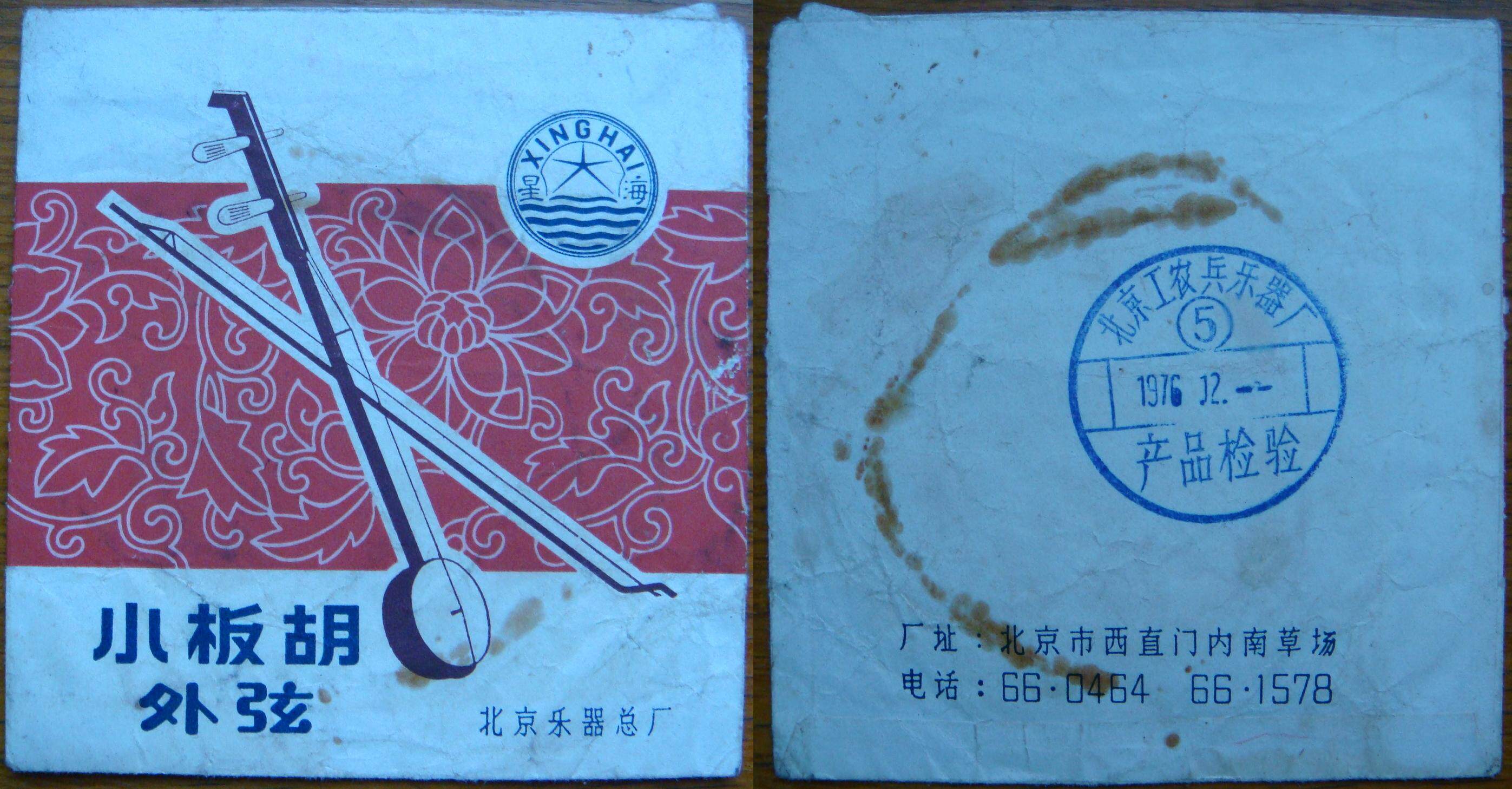 Сяаобан Ху Вайксисский Пекинский музыкальный инструмент Общий фабрика&Ldquo; Синхай” торговая марка бренда в 1976 году (упаковочная сумка) Пекинские работники, крестьяне и военные музыкальные инструменты