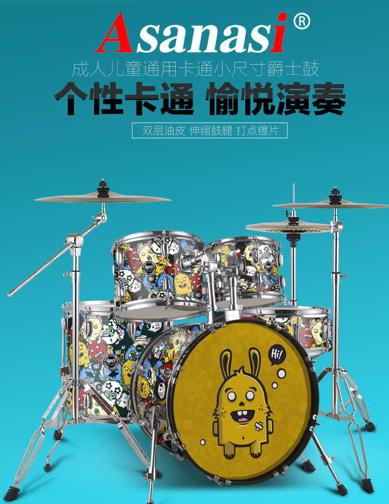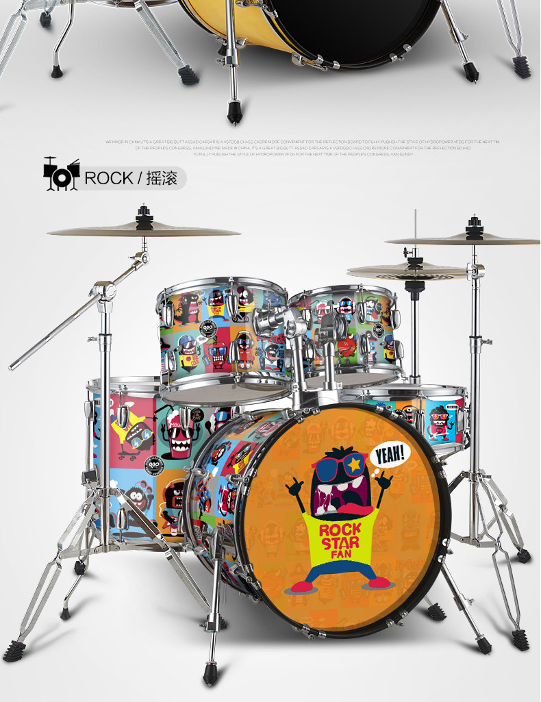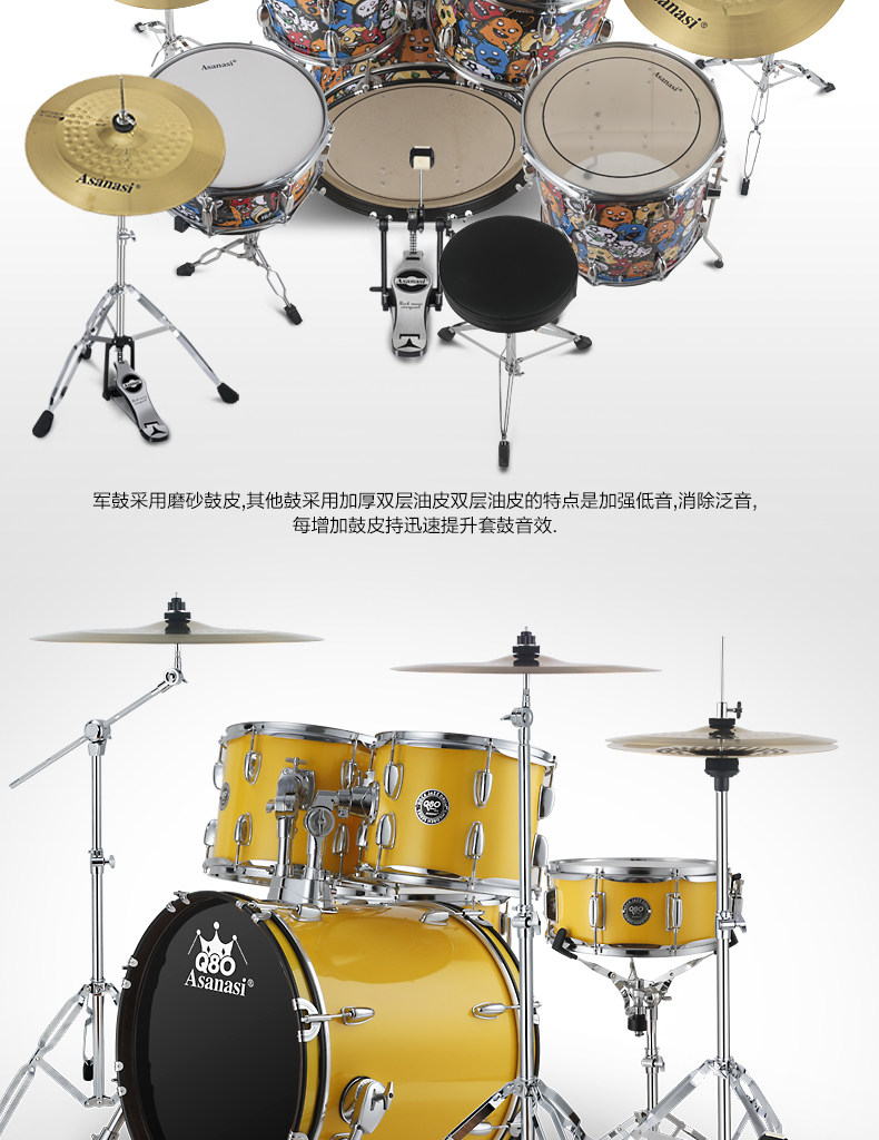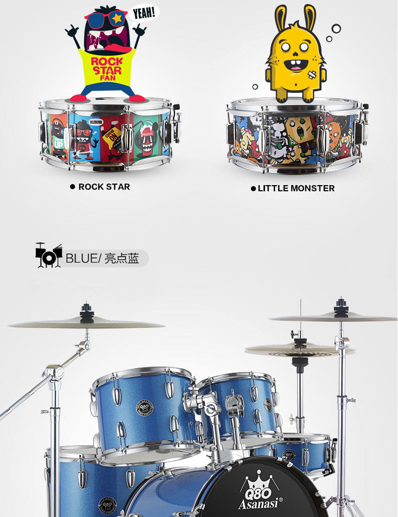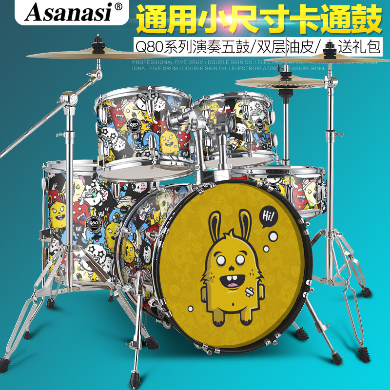 Q80 Взрослый Self -Study Shelf 5 Drum 3 镲 4 镲 Детский старт -экзамен тестовый мультипликационный джазовый барабан Профессиональное выступление