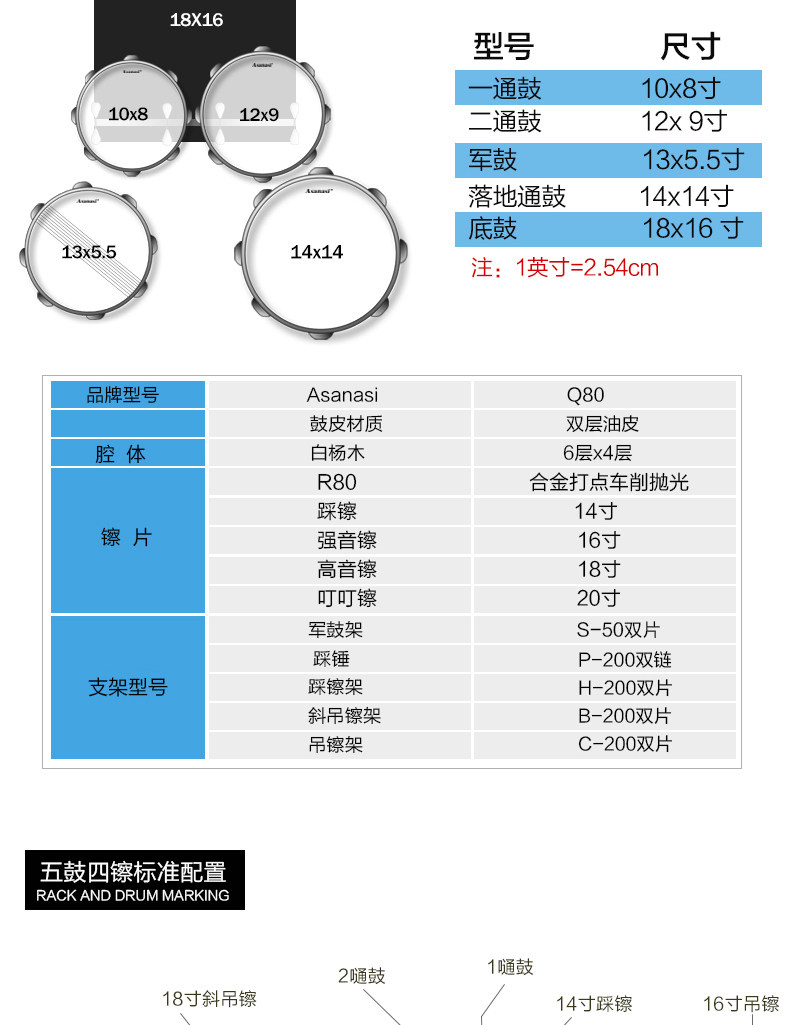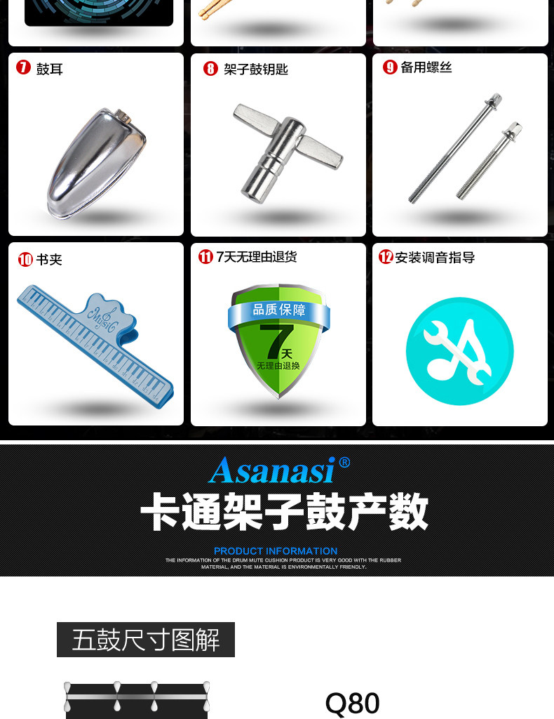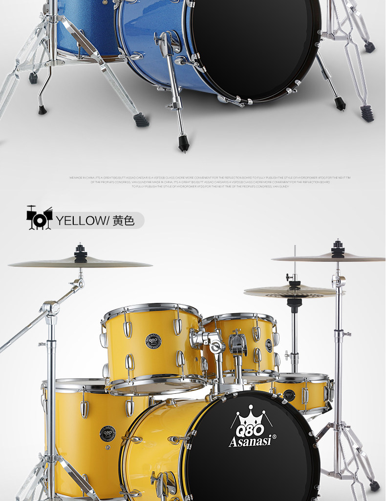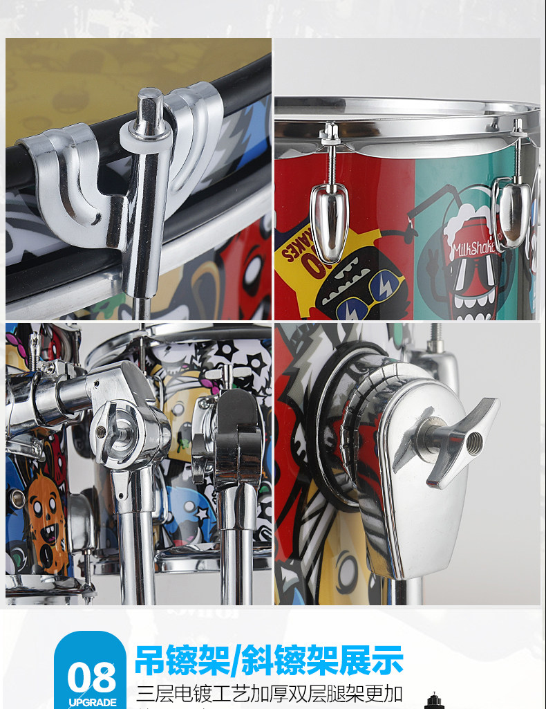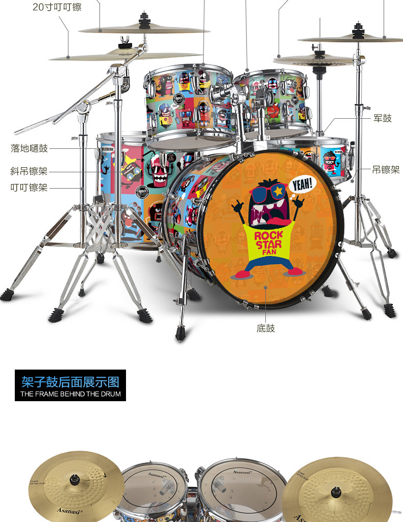 Q80 Взрослый Self -Study Shelf 5 Drum 3 镲 4 镲 Детский старт -экзамен тестовый мультипликационный джазовый барабан Профессиональное выступление