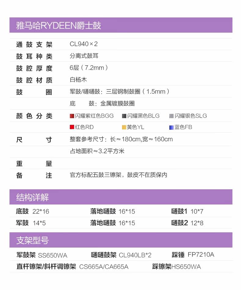 Yamaha Yamaha Slider Drum 5 Drum 3 镲 4 镲 Thunder God Rydeen Adult Professional Jazz Drum Drum