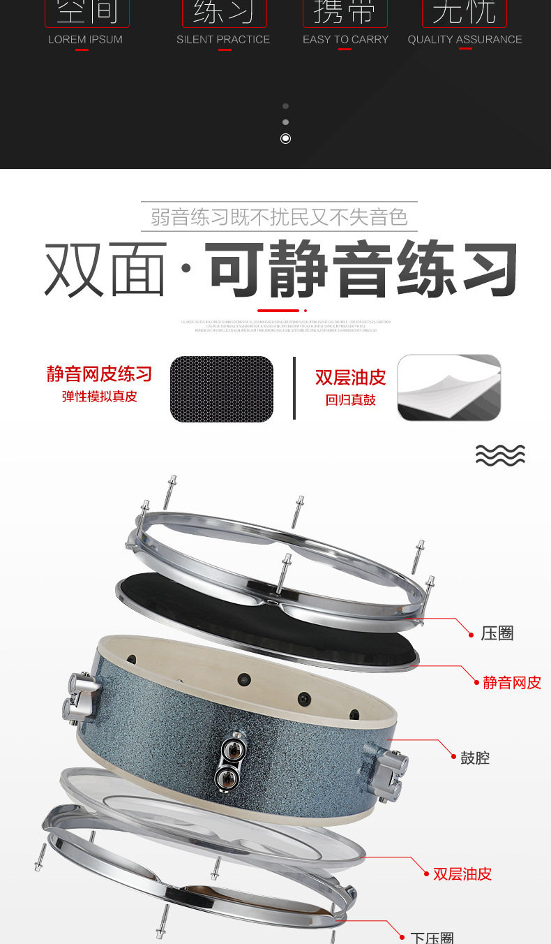 Портативные барабаны для детей и взрослых, двусторонная профессиональная практика для начинающих