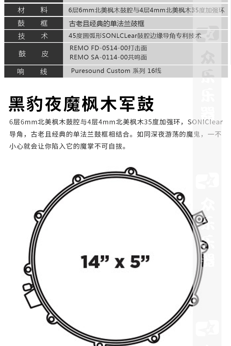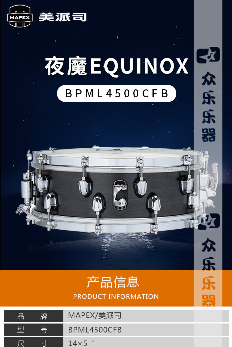 Mepax mei pai bpml4500cfb Ночной демон маленький барабан 14*5 -дюймовый кленовый молочный барабан