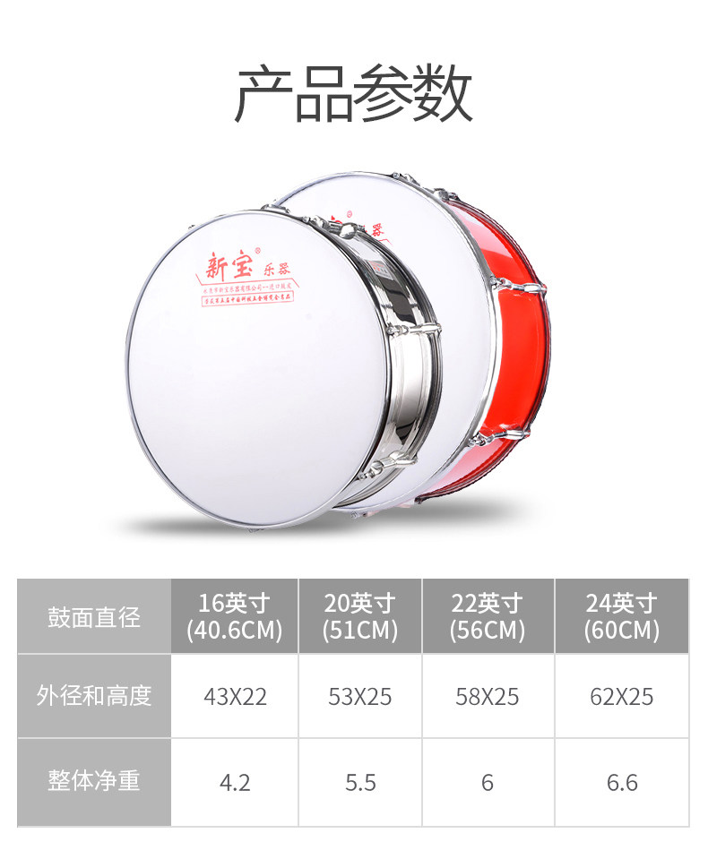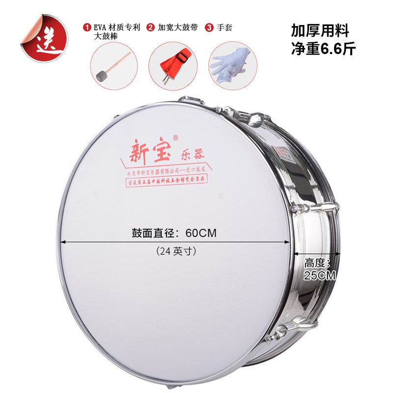新宝 Профессиональная армейская барабанная инструмент из нержавеющей стали 16/20/22/24 дюймов молодые пионерские барабанные студенческие барабаны
