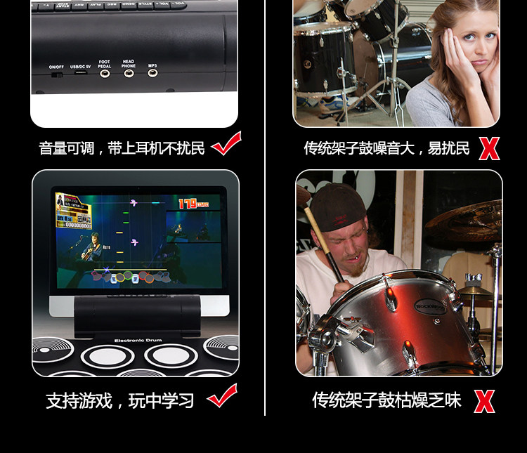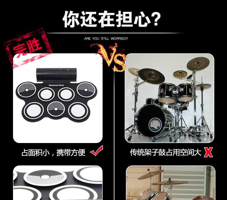 Портативные складные барабаны, электронные ударные инструменты для детей и взрослых для начинающих